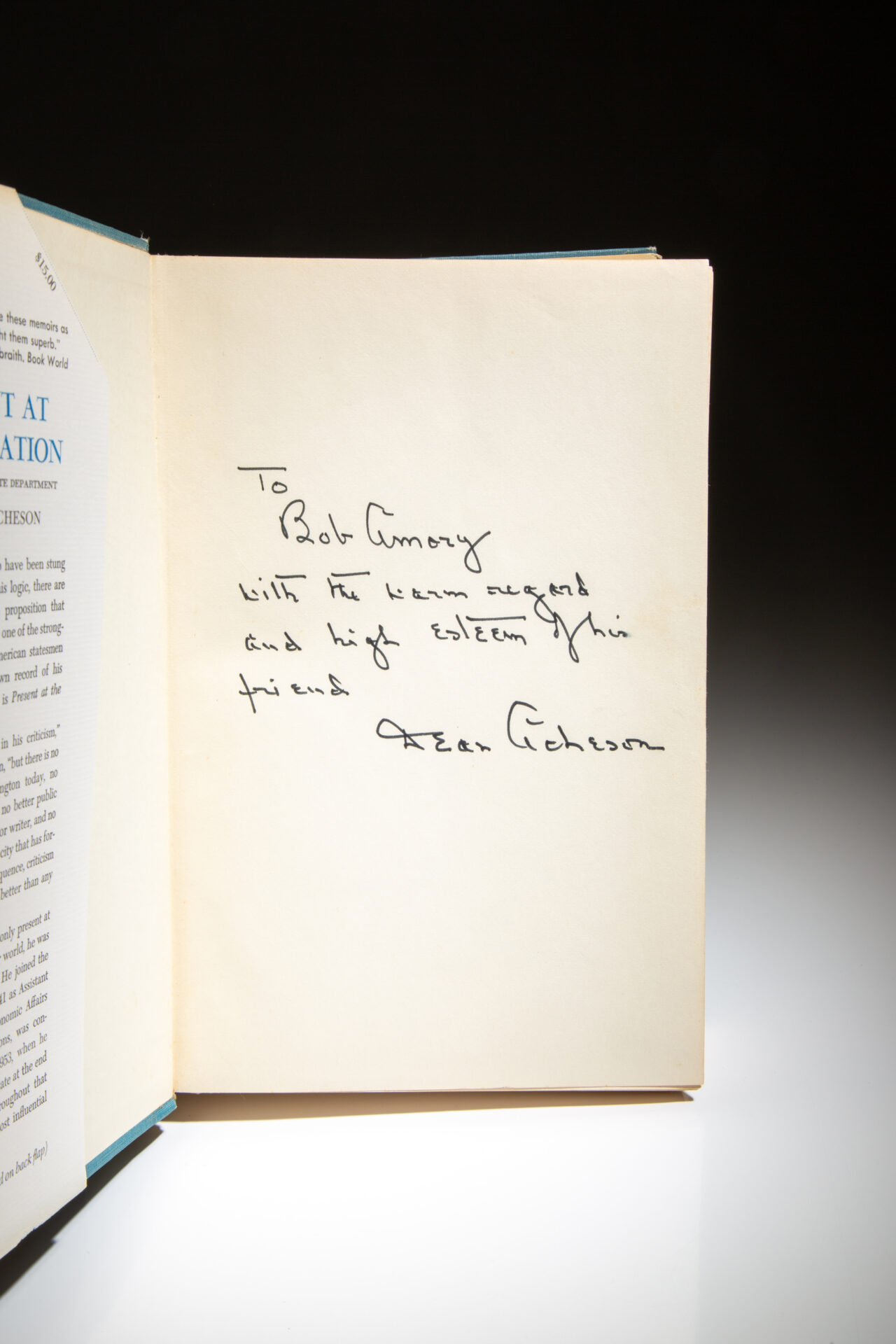 Inscribed on the front free endpaper: “To Bob Amory / with the warm regard and high esteem of his friend / Dean Acheson.”
