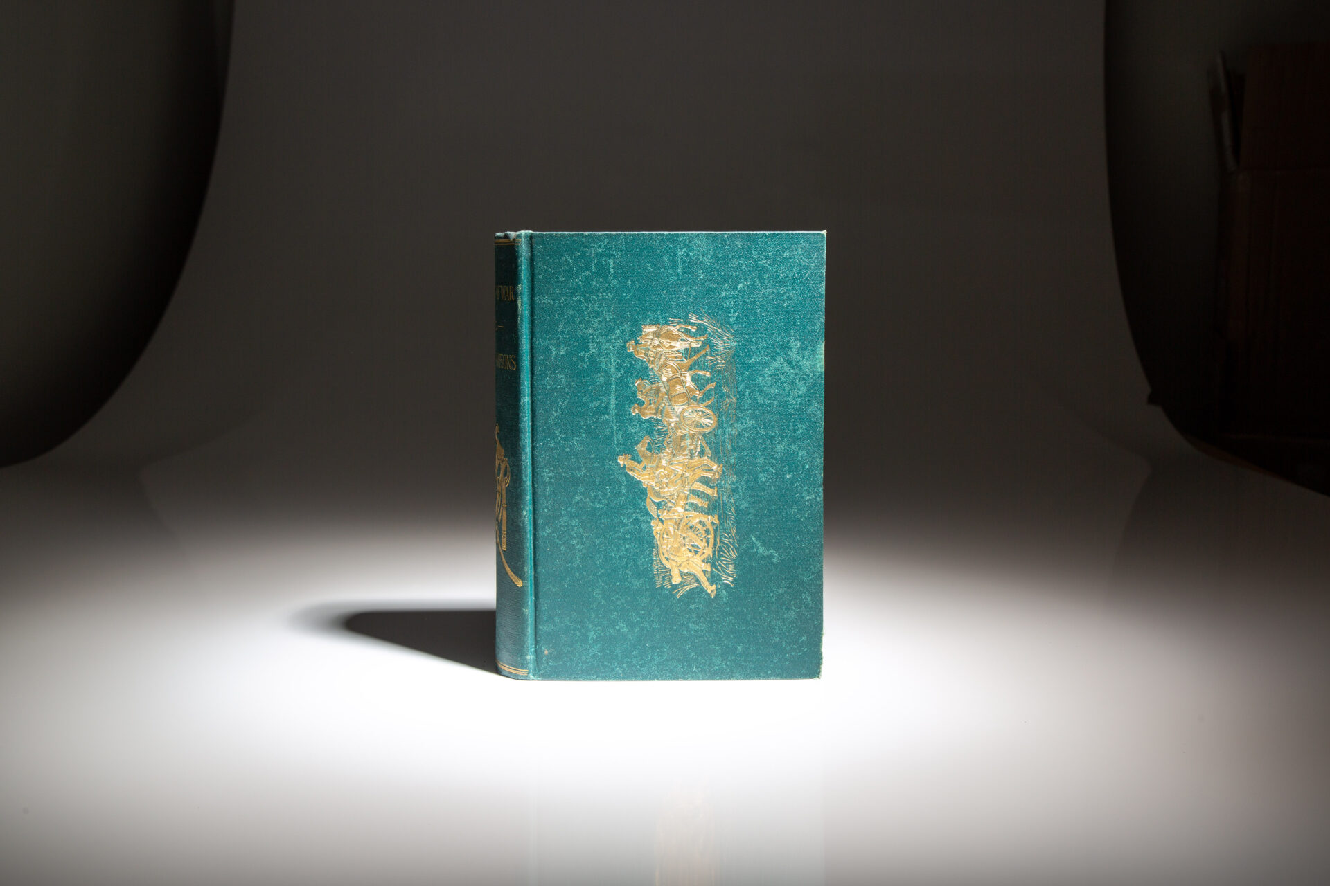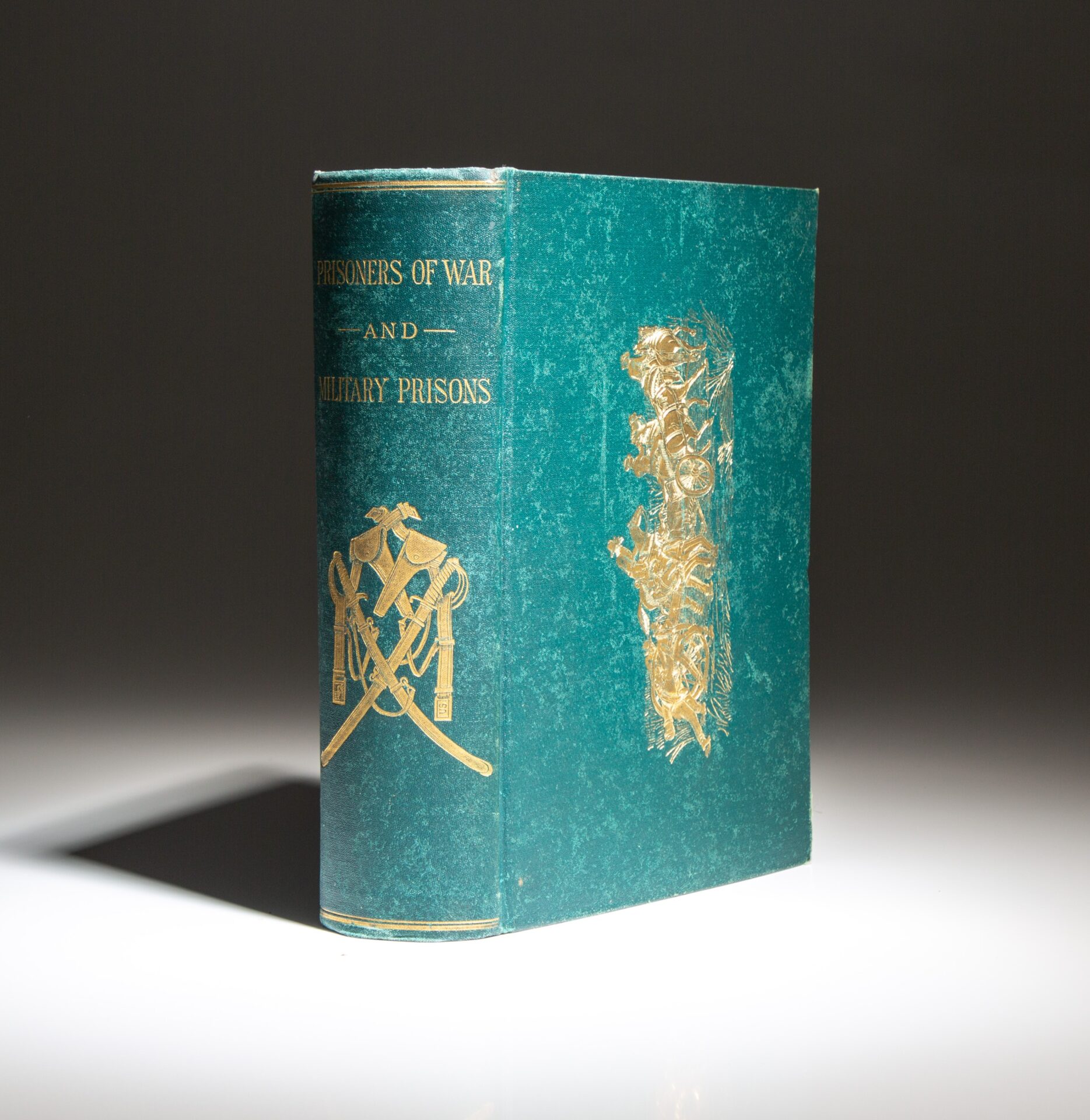 Thick octavo, xii, 571pp, [3]. Publisher’s green cloth, title in gilt on spine with decorative gilt illustrations on both covers. Light rubbing to green cloth covers, rubbing along lower edge of front panel. Decorative end papers, wear at front hinge, text block is solid with tight bindings. Previous ownership inscription on front free end paper from “Samuel W. Smith, Jr.” Complete with 57 illustrations, fold-out map, and a frontispiece portrait of the Andersonville Prison.