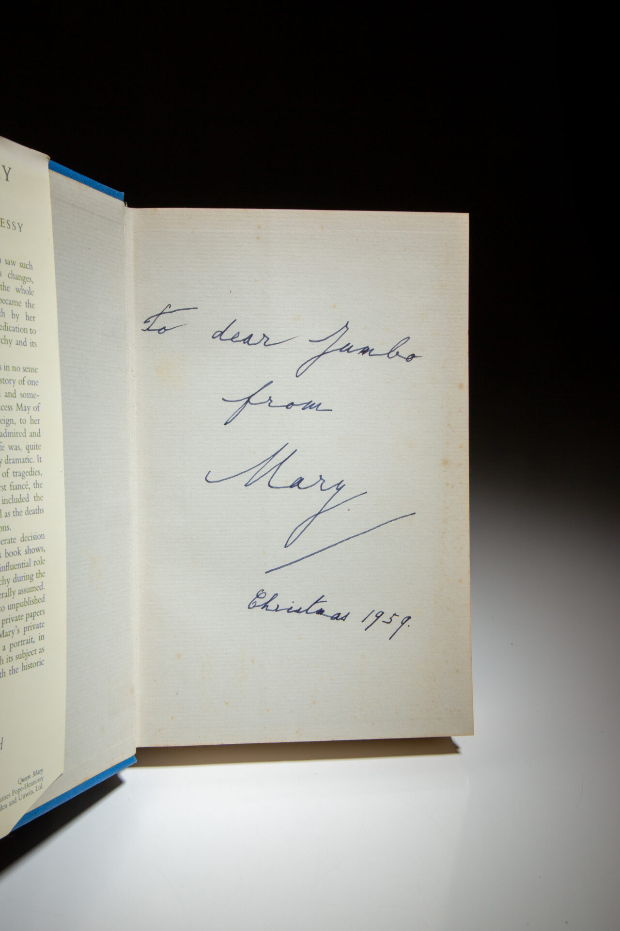 Inscribed by Princess Mary on the front free endpaper: “To dear Jumbo / from Mary / Christmas 1959.”