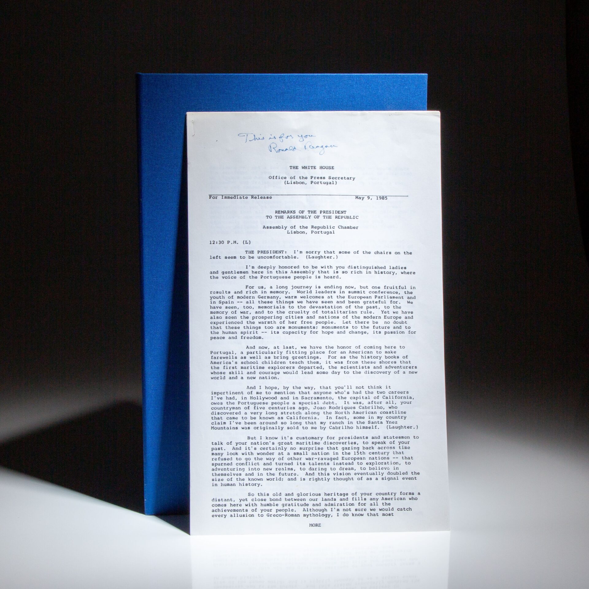 The Remarks of President Ronald Reagan in Lisbon, Portugal to The Assembly of the Republic on May 9, 1985, signed by the president.