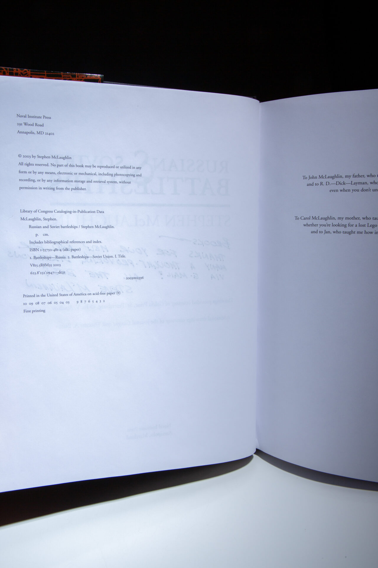 The first edition of Russian & Soviet Battleships, inscribed by Stephen McLaughlin.