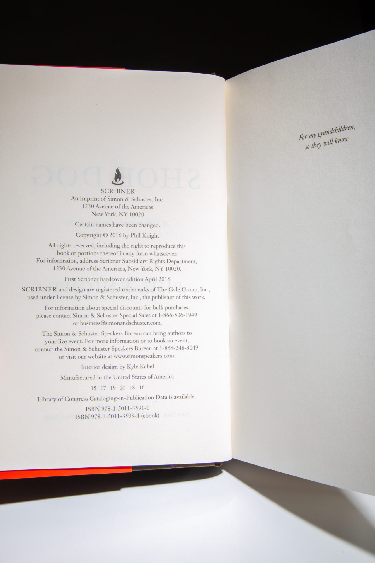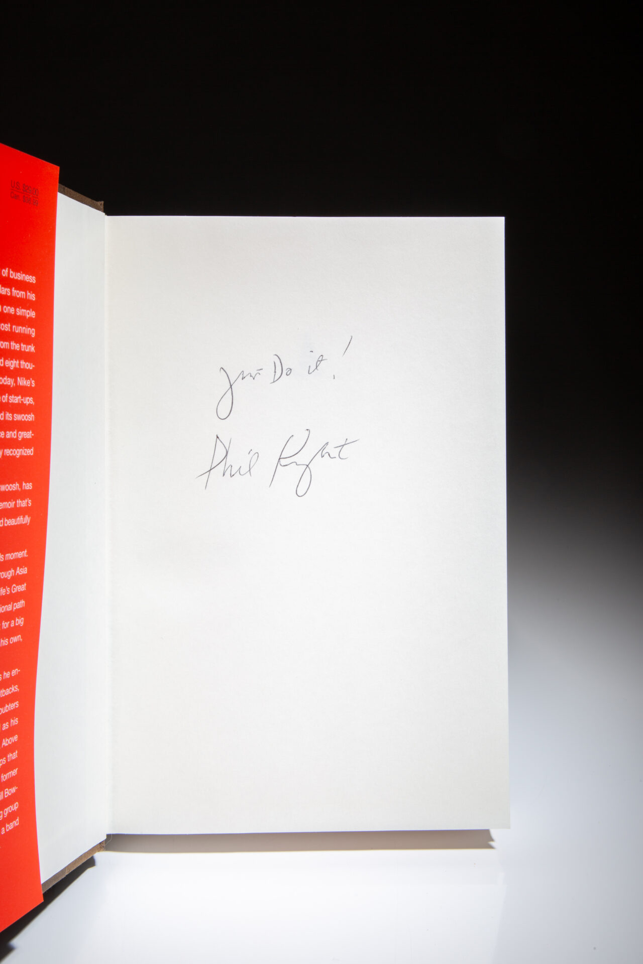 Shoe Dog: A Memoir by the Creator of Nike, Phil Knight, inscribed “Just Do It!”
