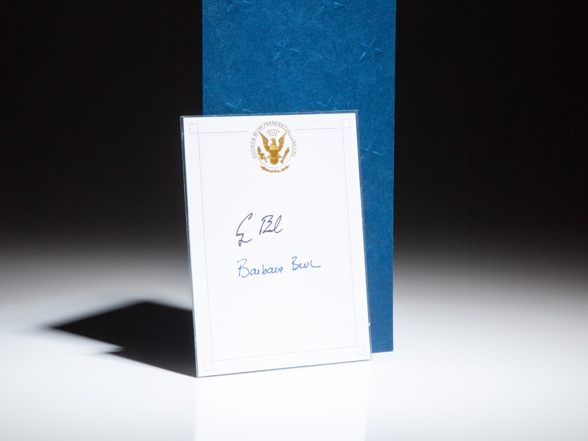 A bookplate from the George H.W. Bush Presidential Library, signed by President Bush and Barbara Bush.