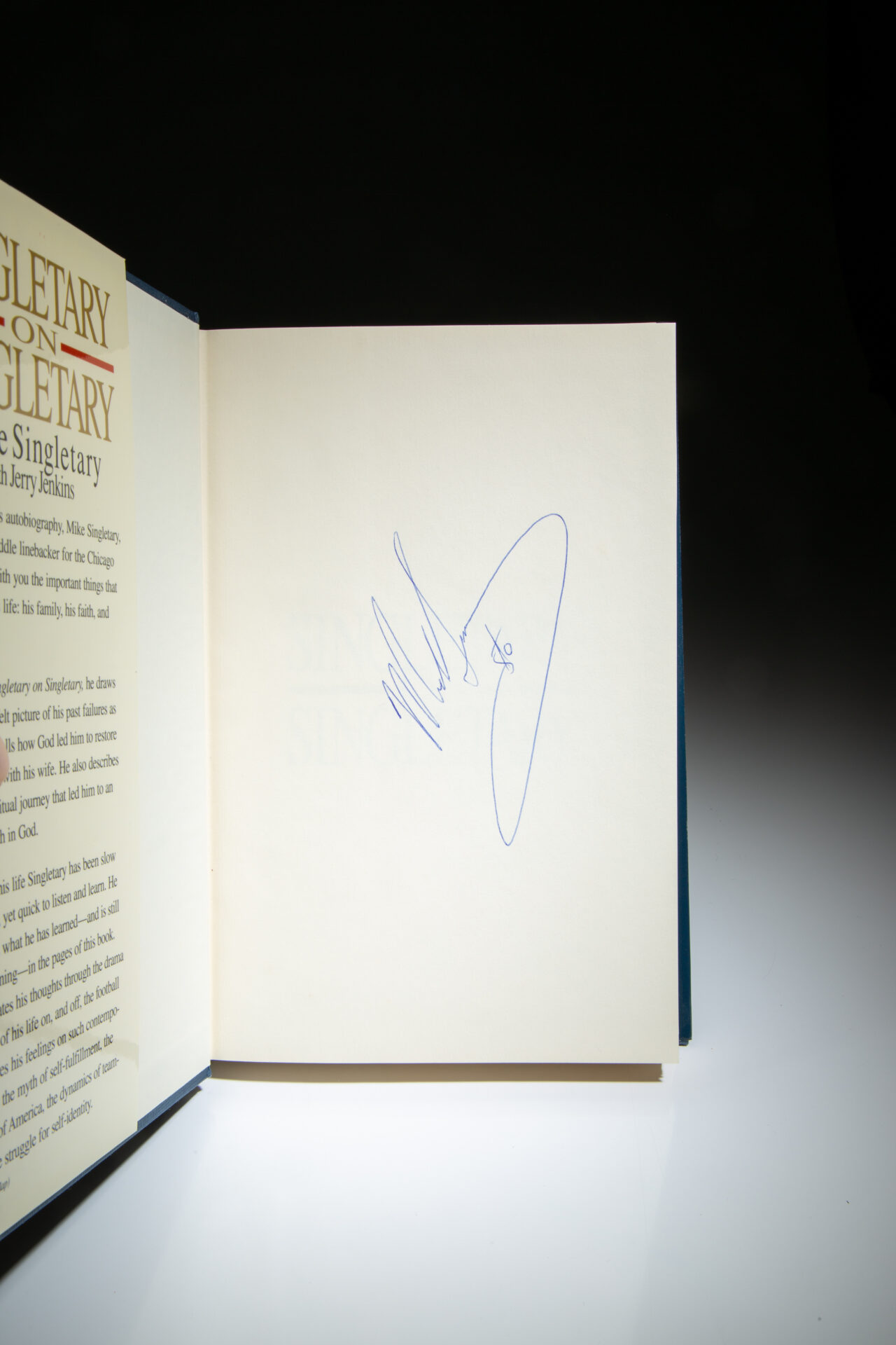 Octavo, xii, [2], 220pp, [4]. Blue hardcover, title in gilt on spine. Number line on copyright page starting with “1”. In the publisher’s dust jacket, no retail price listed, light shelf wear, otherwise fine. Signed by Mike Singletary on the front free endpaper.