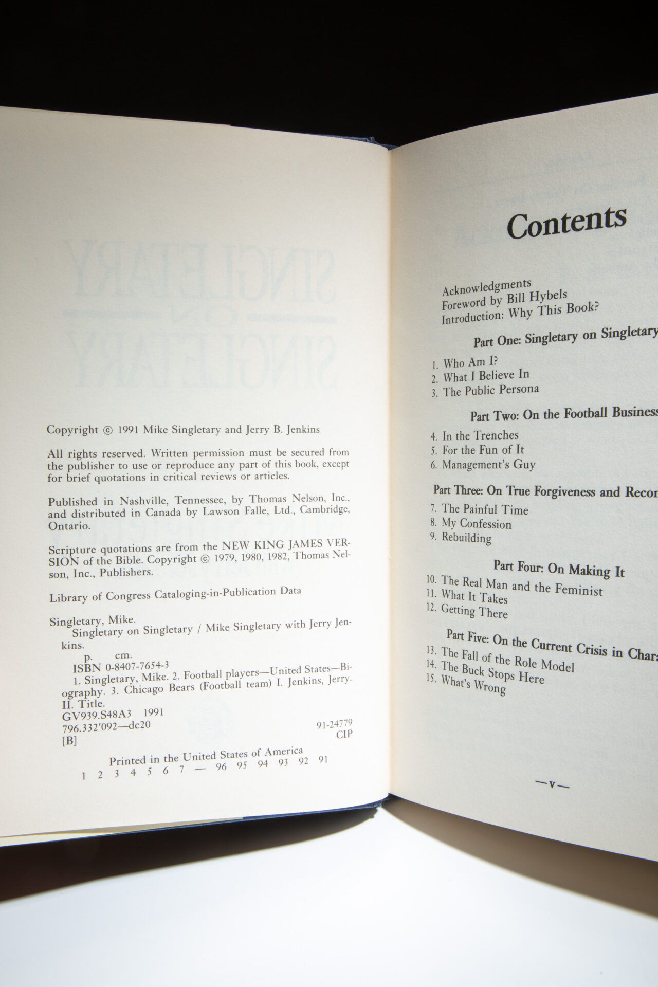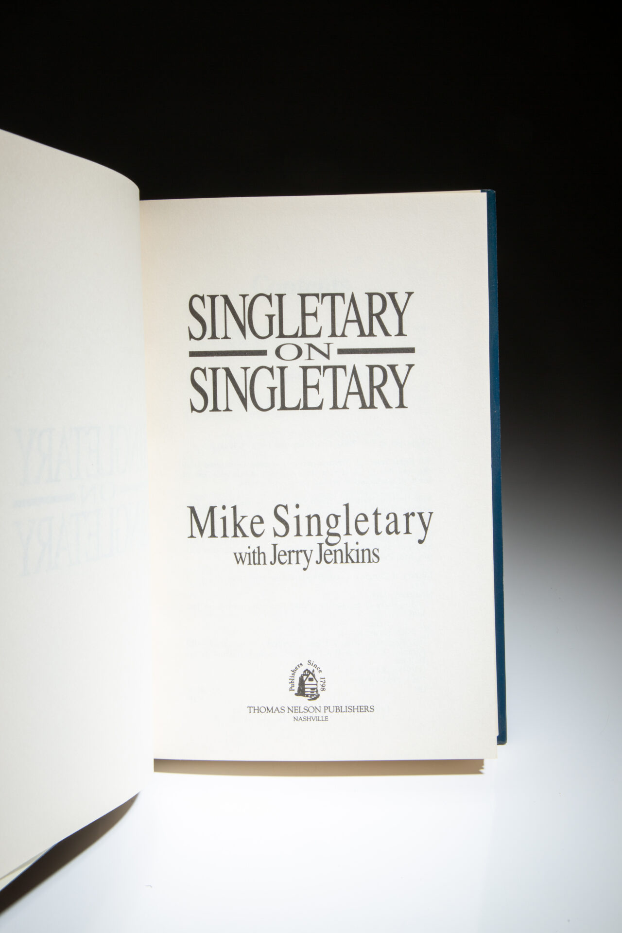 Signed first edition of Singletary on Singletary by Mike Singletary with Jerry Jenkins.