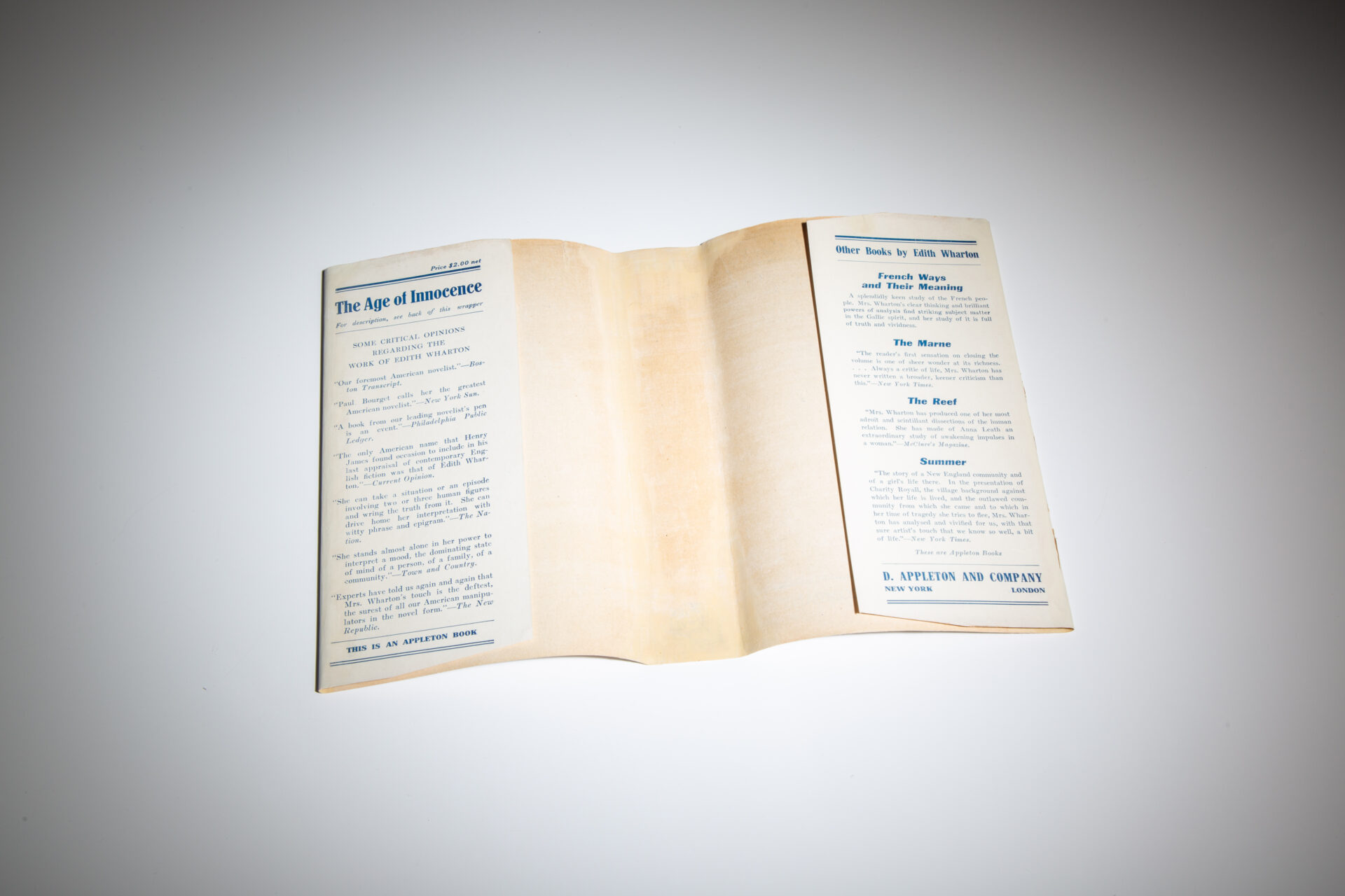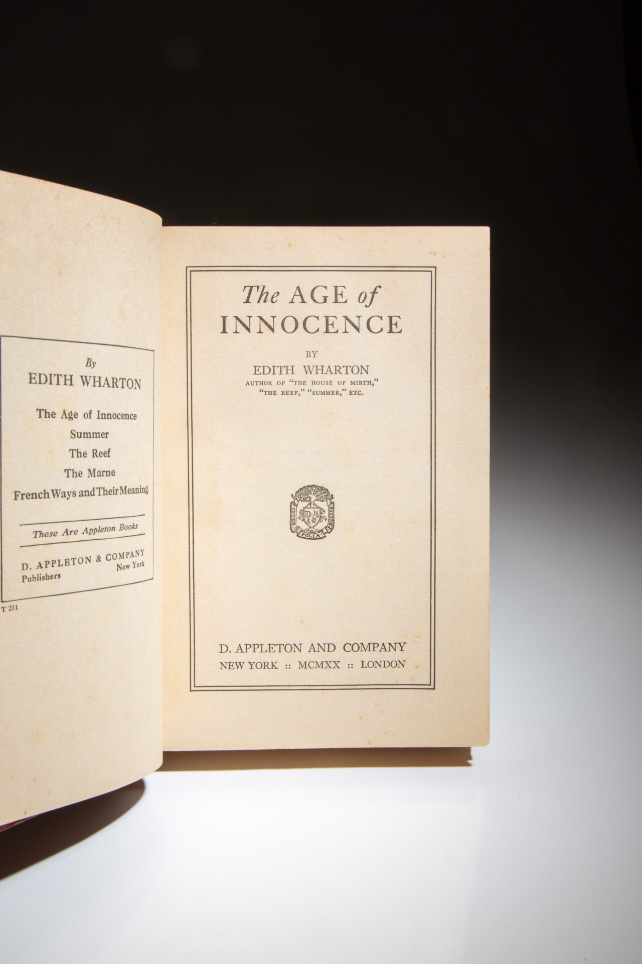 First edition, first printing of The Age of Innocence by Edith Wharton, in the restored first state dust jacket.