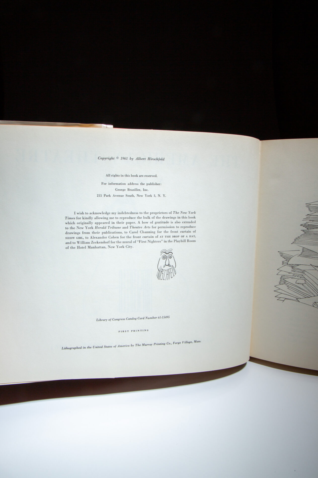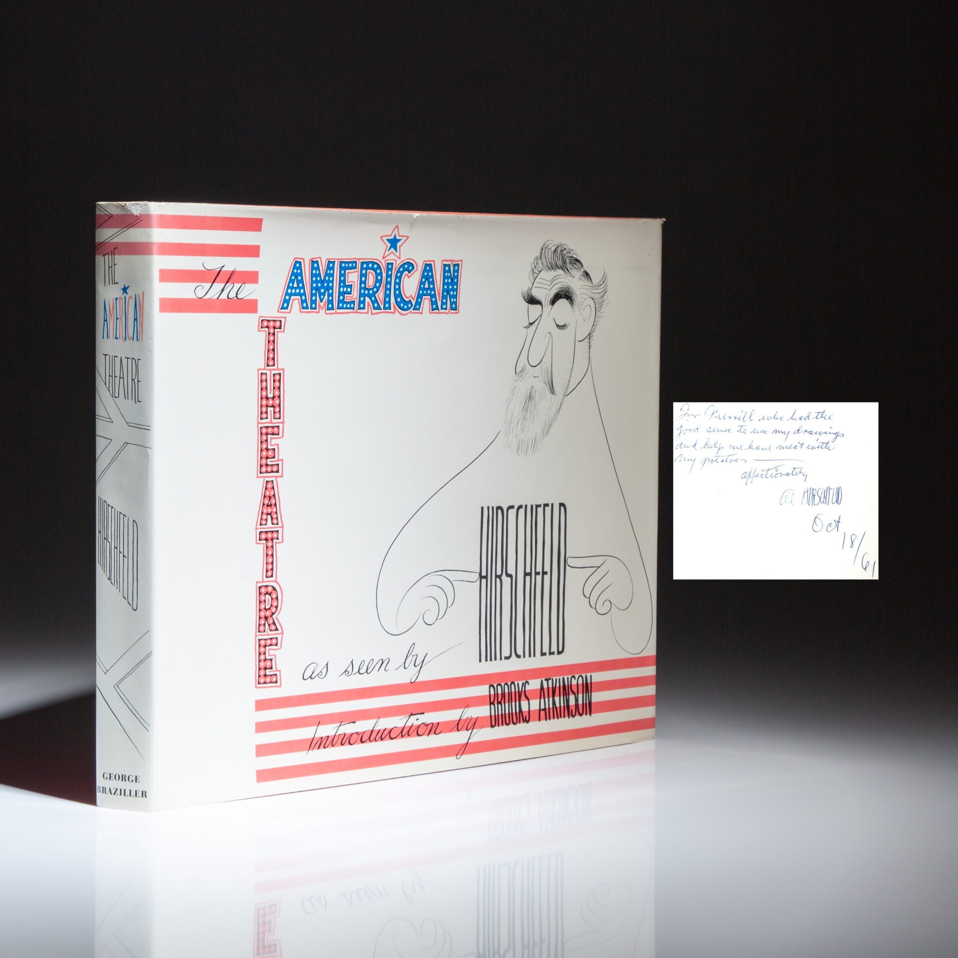 The first edition of The American Theatre as seen by Hirschfeld, inscribed Al Hirschfeld to Merrill Panitt, the editor of TV Guide.