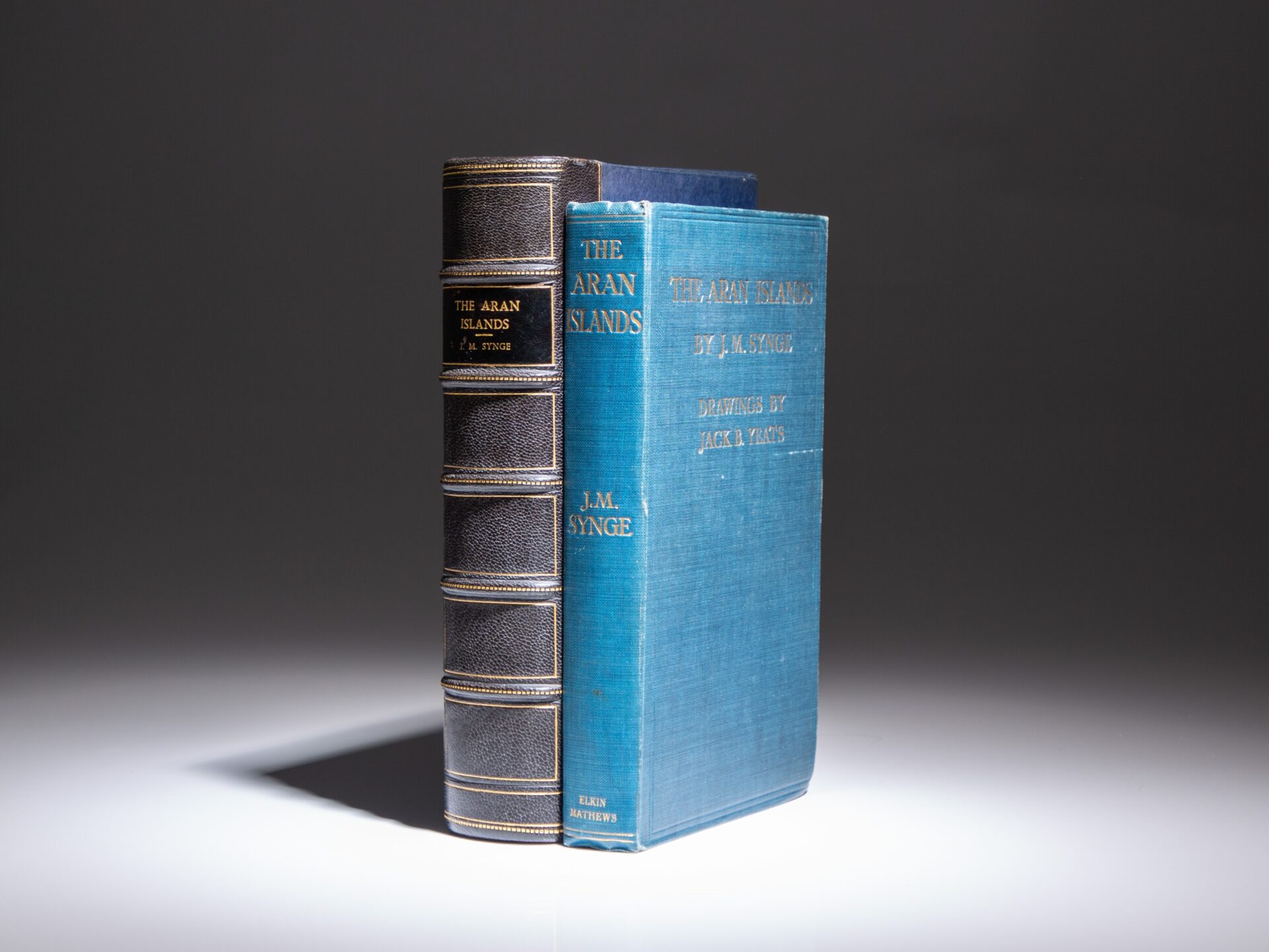 Octavo, xii, 189pp, [3]. Blue cloth, title in gilt on front cover and spine. No additional printings listed. Previous bookseller’s label affixed to front endpaper. Solid text block, bumped corners, offsetting from newspaper at rear endpapers. Complete with 12 black-and-white illustrations by Jack B. Yeats, including a frontispiece protected with tissue guard. Housed in a custom dark blue cloth chemise, title in gilt on blue morocco spine.