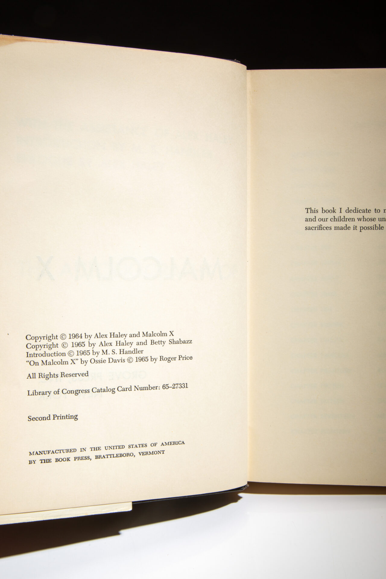 First edition, second printing of The Autobiography of Malcolm X, previously owned by two New York civil rights activists.
