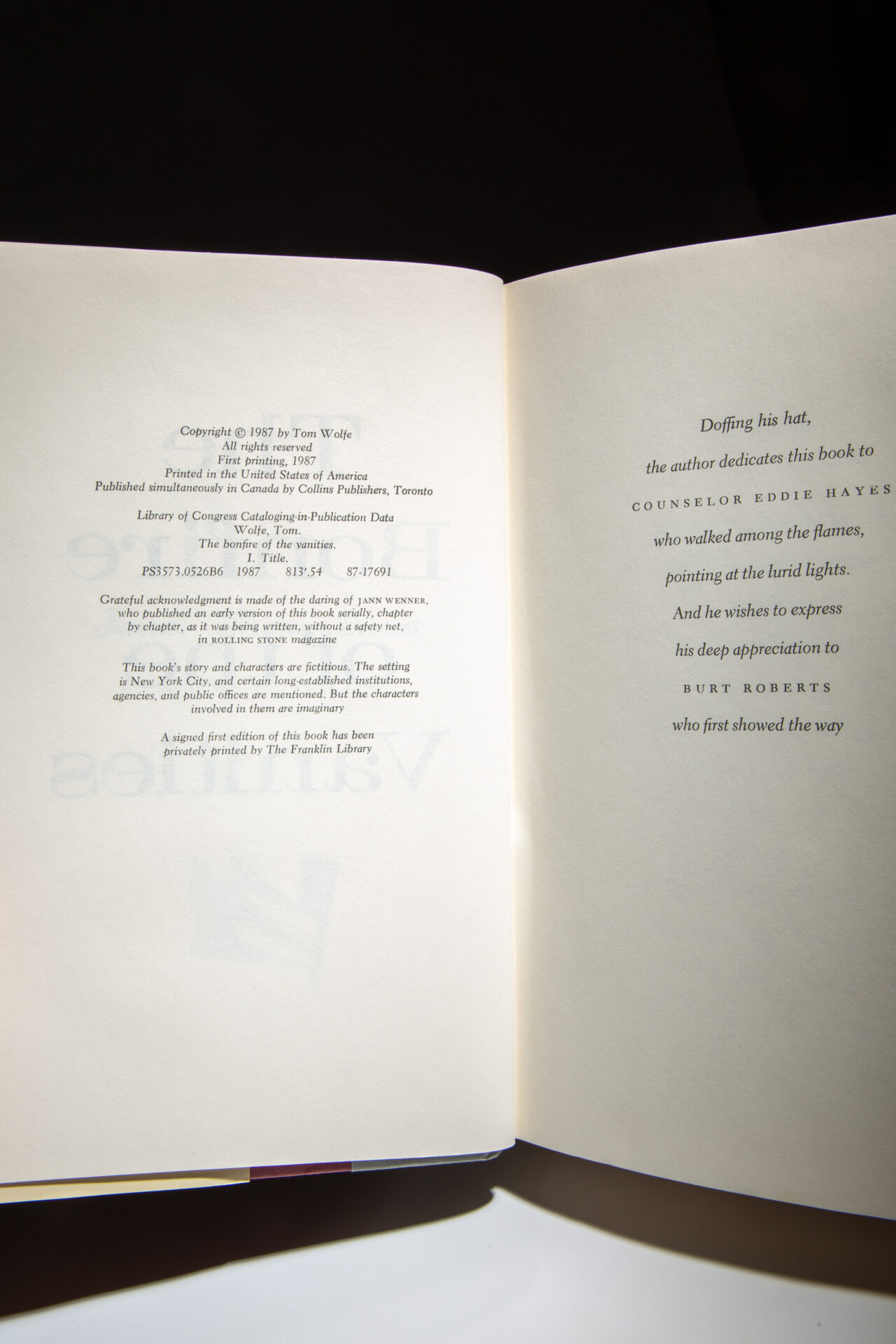 First edition of The Bonfires Of The Vanities by Tom Wolfe.