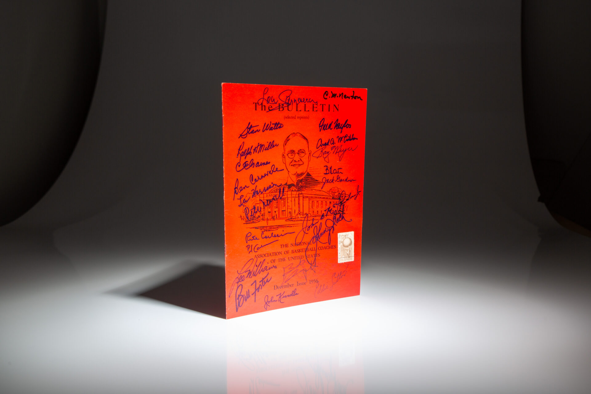 The Bulletin, Reprint of the December 1956, from the National Association of Basketball Coaches, with the signatures of 22 Hall of Fame coaches, players and basketball executives.
