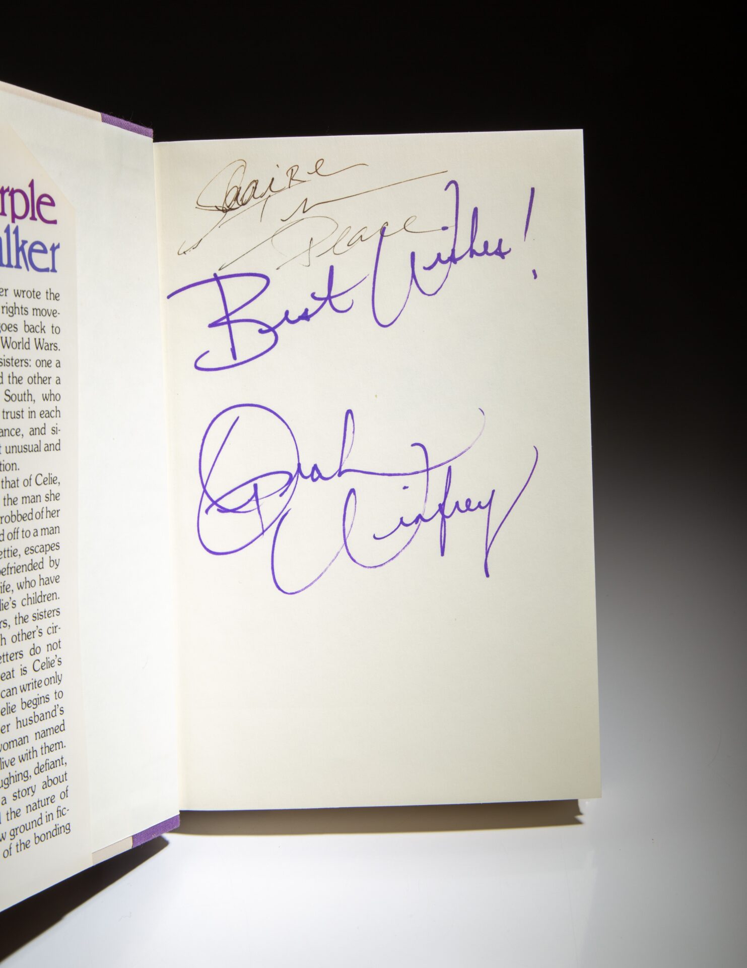 First edition, later printing of The Color Purple: A Novel by Alice Walker, signed by Oprah Winfrey.