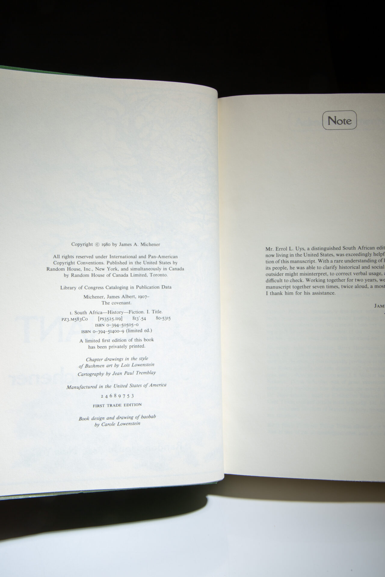 The signed limited edition of The Covenant by James Michener.