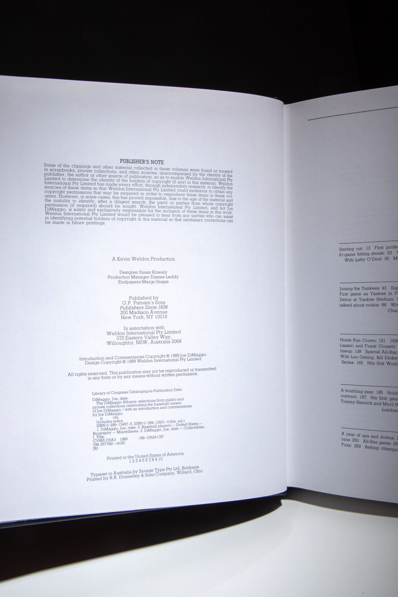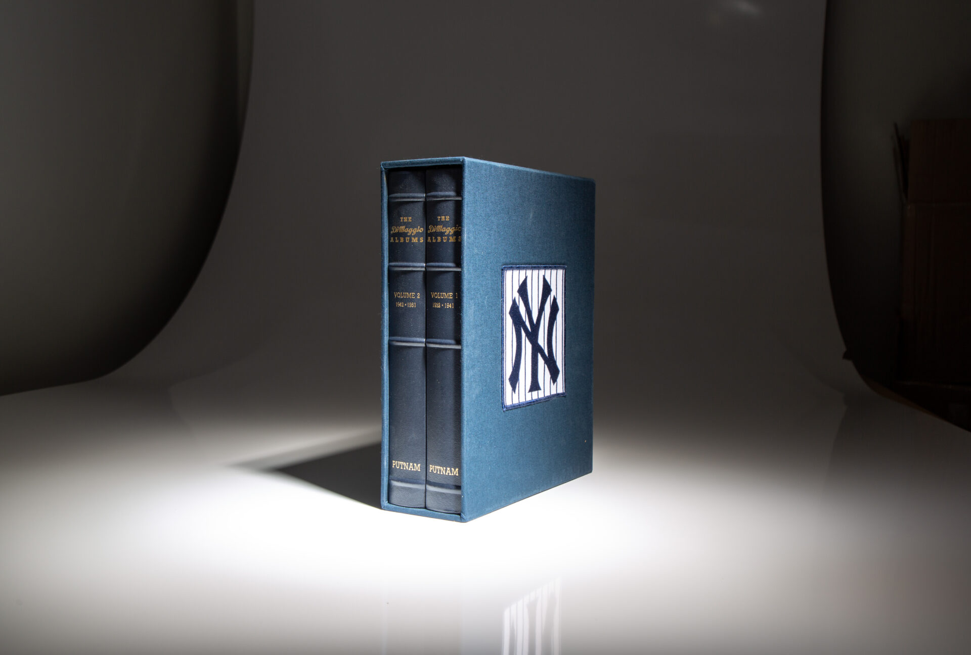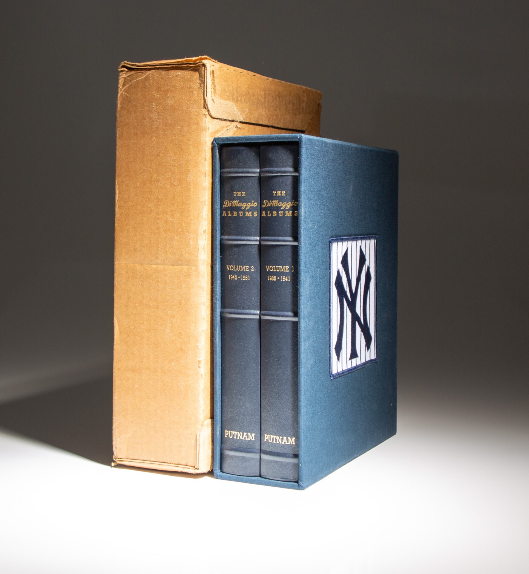 Quarto, [two volumes], [2], 400pp; [401]-800. Dark blue leather, raised bands, gilt title on spine. Marbled end papers. Publisher’s original slipcase with Yankees logo and uniform #5 on side panels, fine condition. In the publisher’s original cardboard shipping box and paper wrappers, matching limitation on cardboard box.
