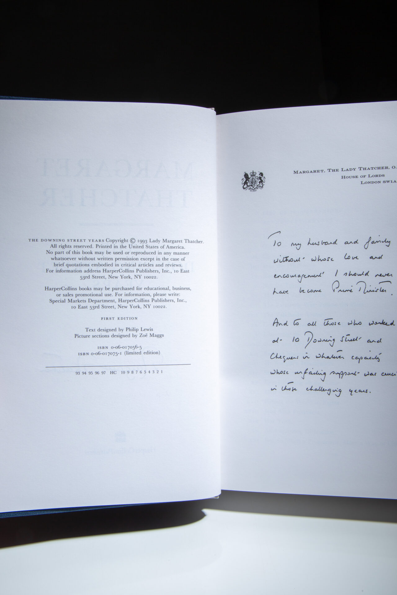 Limited edition of The Downing Street Years, signed by Prime Minister Margaret Thatcher and limited to 350 signed copies.