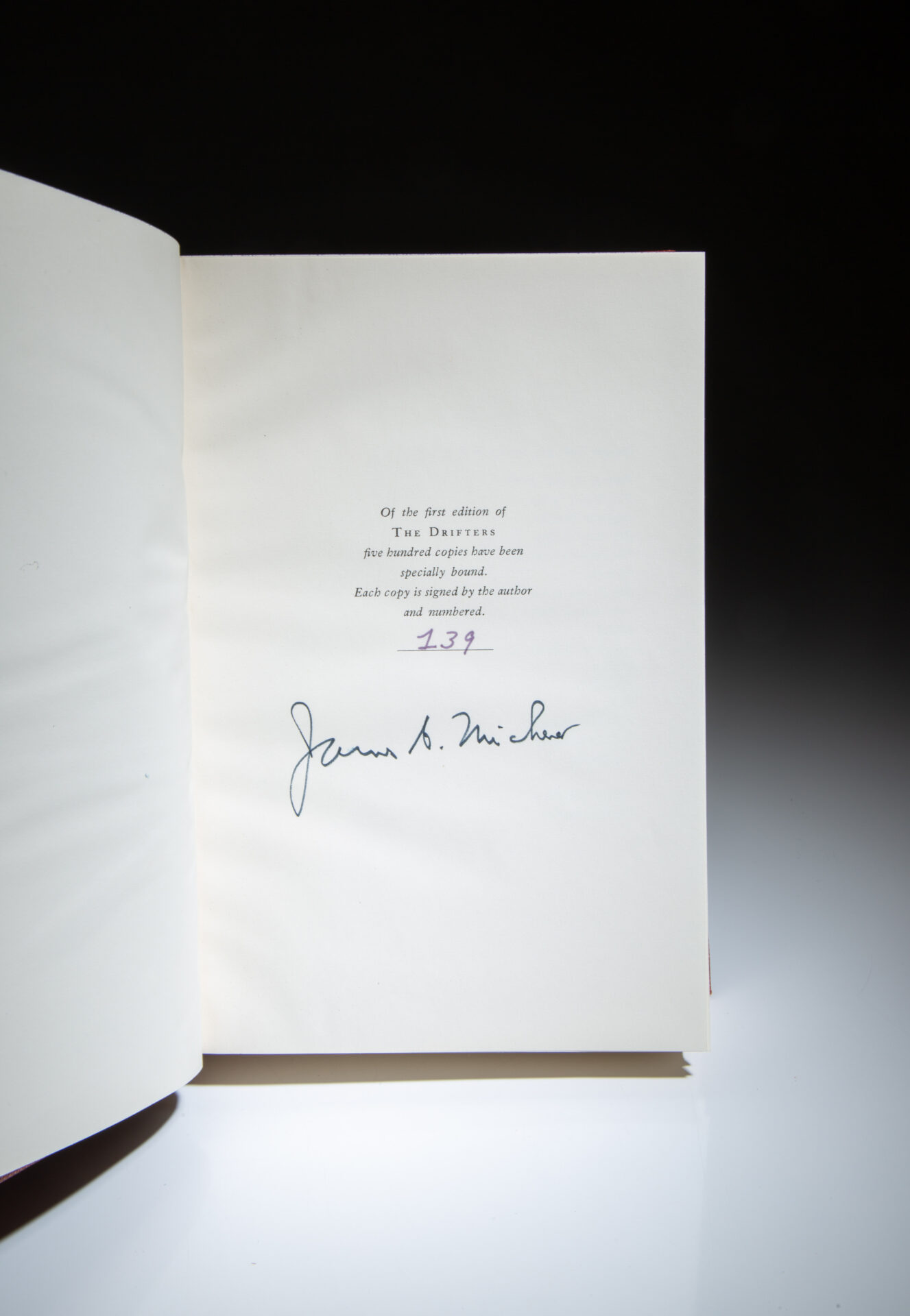 The signed limited edition of The Drifters, A Novel by James Michener.