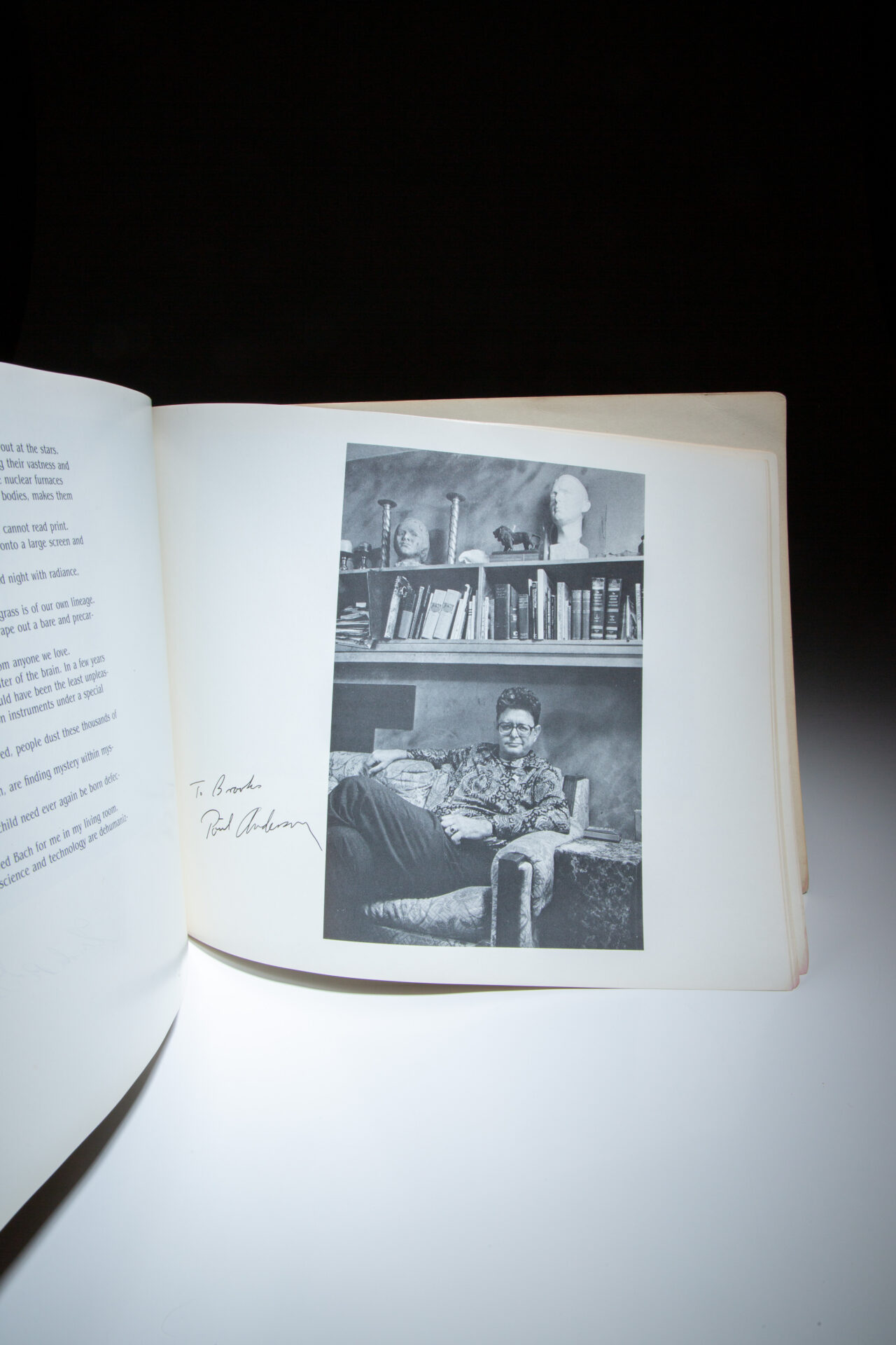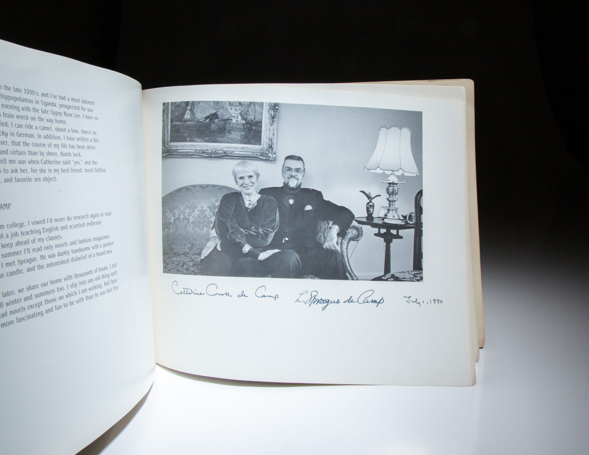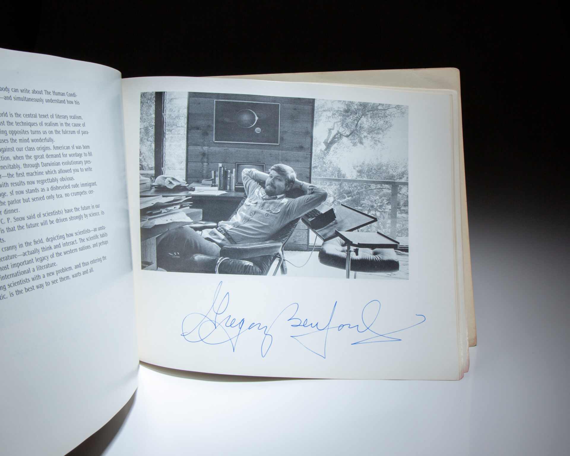 Signed or inscribed by the following authors: Hal Clement, Jack Williamson, Joe Haldeman, Roger Zelazny, Mike Resnick, Forrest J. Ackerman, David Drake, Algis Budrys, C. L. Moore, Fred Saberhagen, David Brin, Charles Sheffield, Fritz Leiber, Juanita Coulson, Marion Zimmer Bradley, Philip José Farmer, C. J. Cherryh, R. A. Lafferty, David Gerrold, George R. R. Martin, John Varley, Edward Bryant, Julian May, Jerry Pournelle, Larry Niven, Jack L. Chalker, Frederik Pohl, Wilson Tucker, Gordon R. Dickson, Poul Anderson, L. Sprague and Catherine Crook de Camp, Gregory Benford, Ben Bova, Marta Randall, Jacqueline Lichtenberg, Joan D. Vinge, George Alec Effinger, and Robert Silverberg.