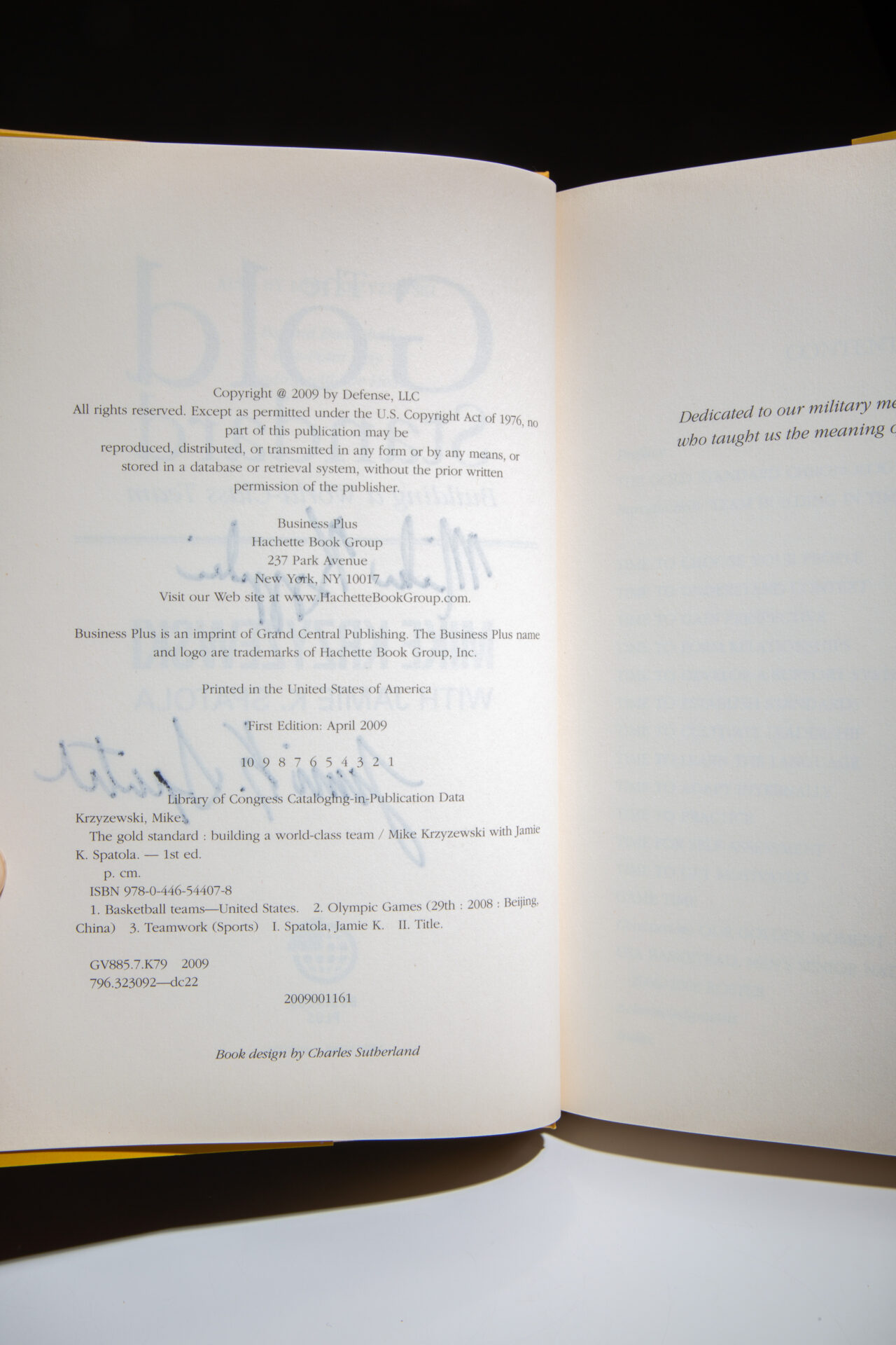 First edition of The Gold Standard: Building a World-Class Team, signed by Duke basketball coach Mike Krzyzewski.