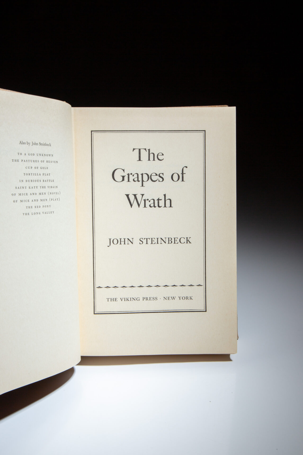 First edition, first printing of The Grapes of Wrath by John Steinbeck, in the publisher’s first state dust jacket.