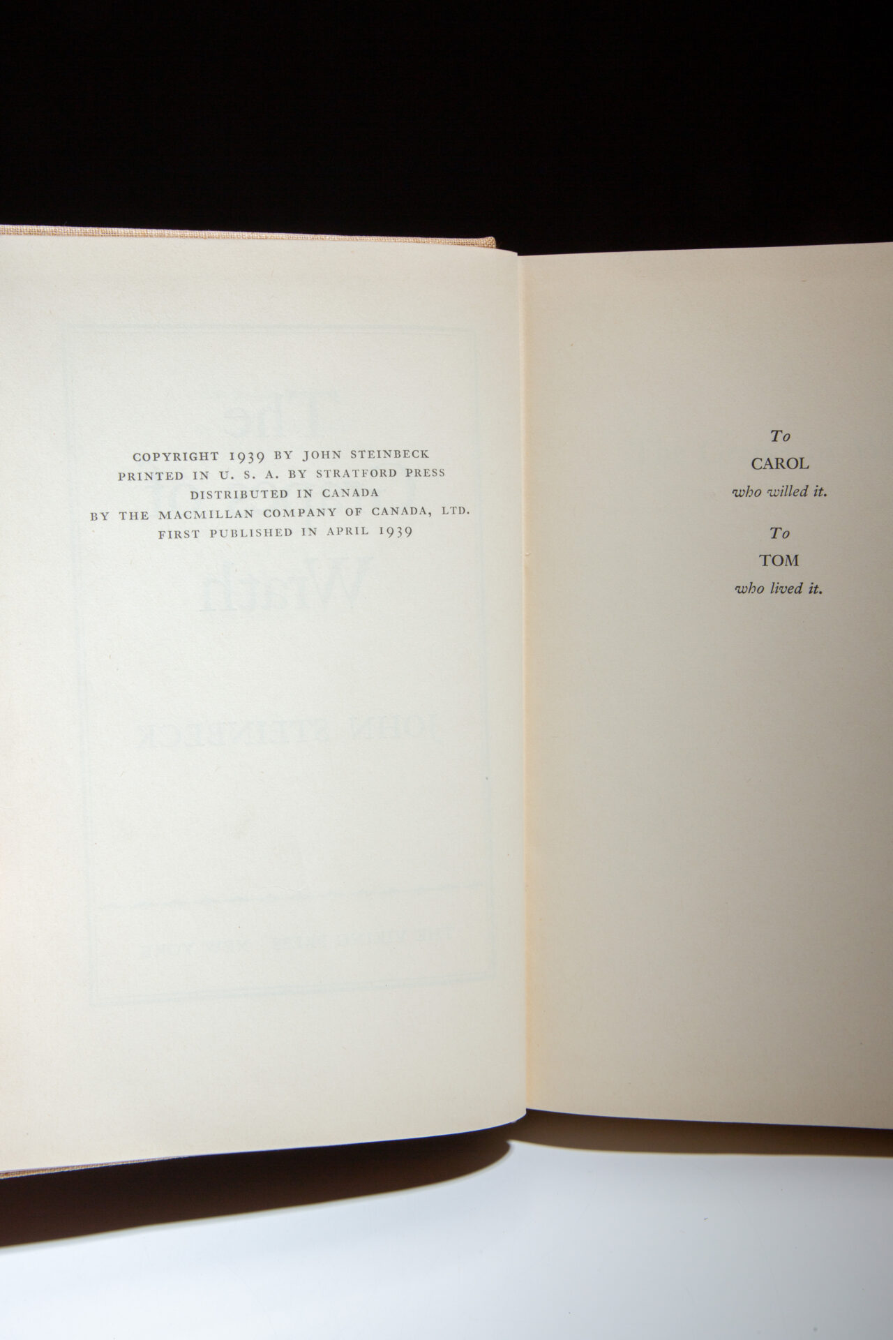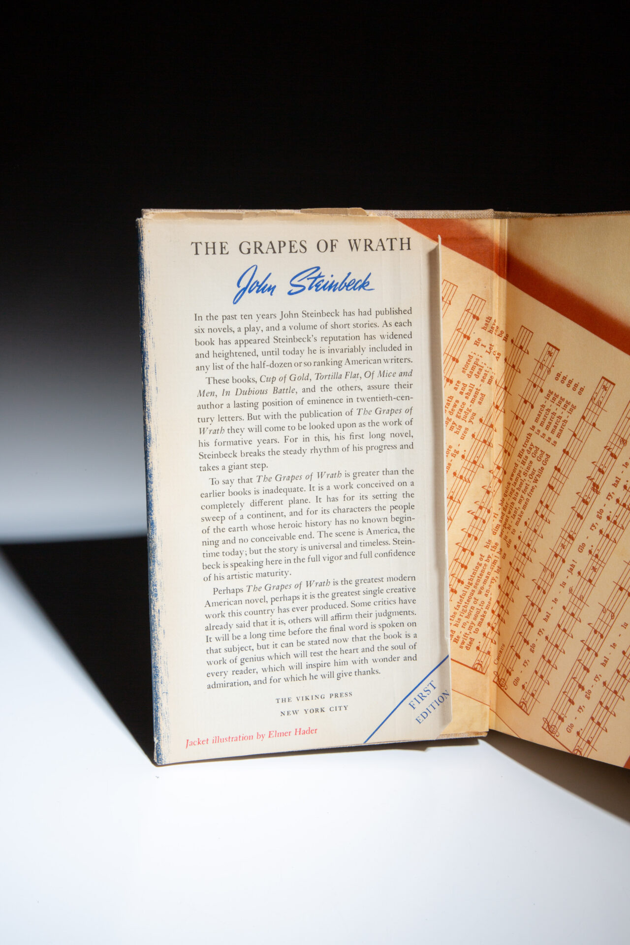 Winner of the National Book Award for Fiction and the Pulitzer Prize in 1940. Dust jacket designed by Elmer Hader.