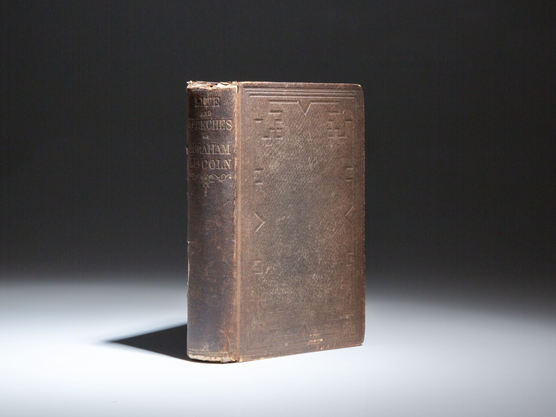 Octavo, vii, [1], [15]-357pp, [5]. Brown pebbled cloth, title in gilt. Rubbing to tips, some light foxing to text block. Rear hinge stable, but cloth is fraying. Frontispiece portrait of Lincoln.