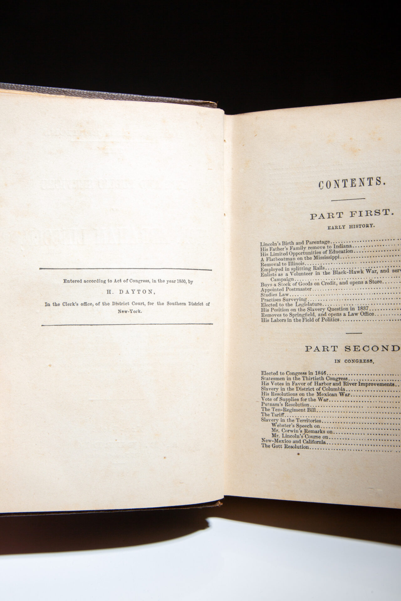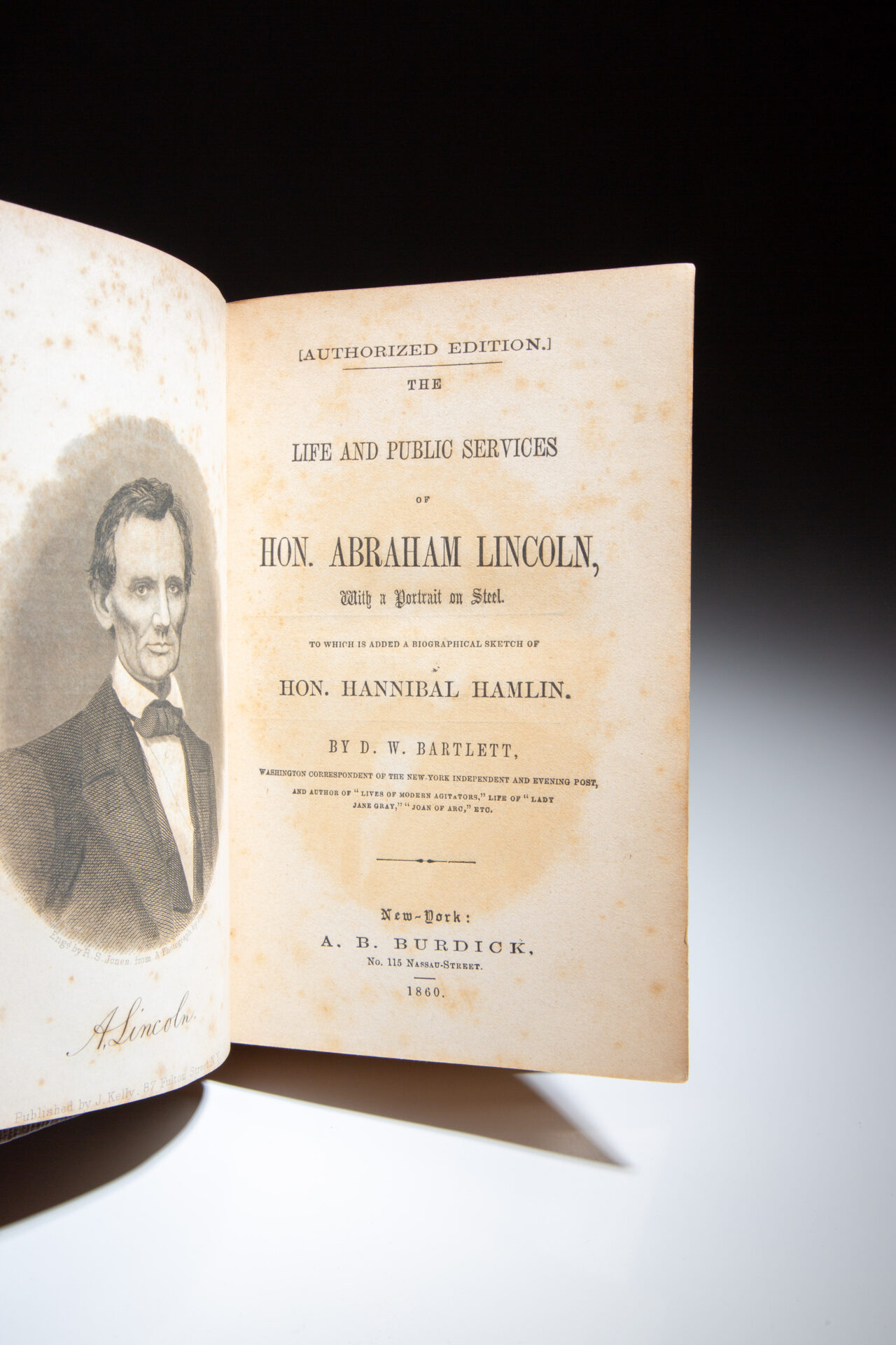From the library of Judge William H. Holt, the “Authorized Edition” of Abraham Lincoln, The Life and Public Services of Hon. Abraham Lincoln by David Bartlett.