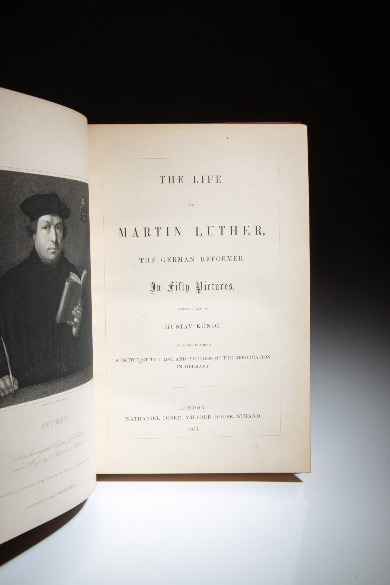 The first edition of The Life of Martin Luther: The German Reformer by Gustav König, published in London in 1853.