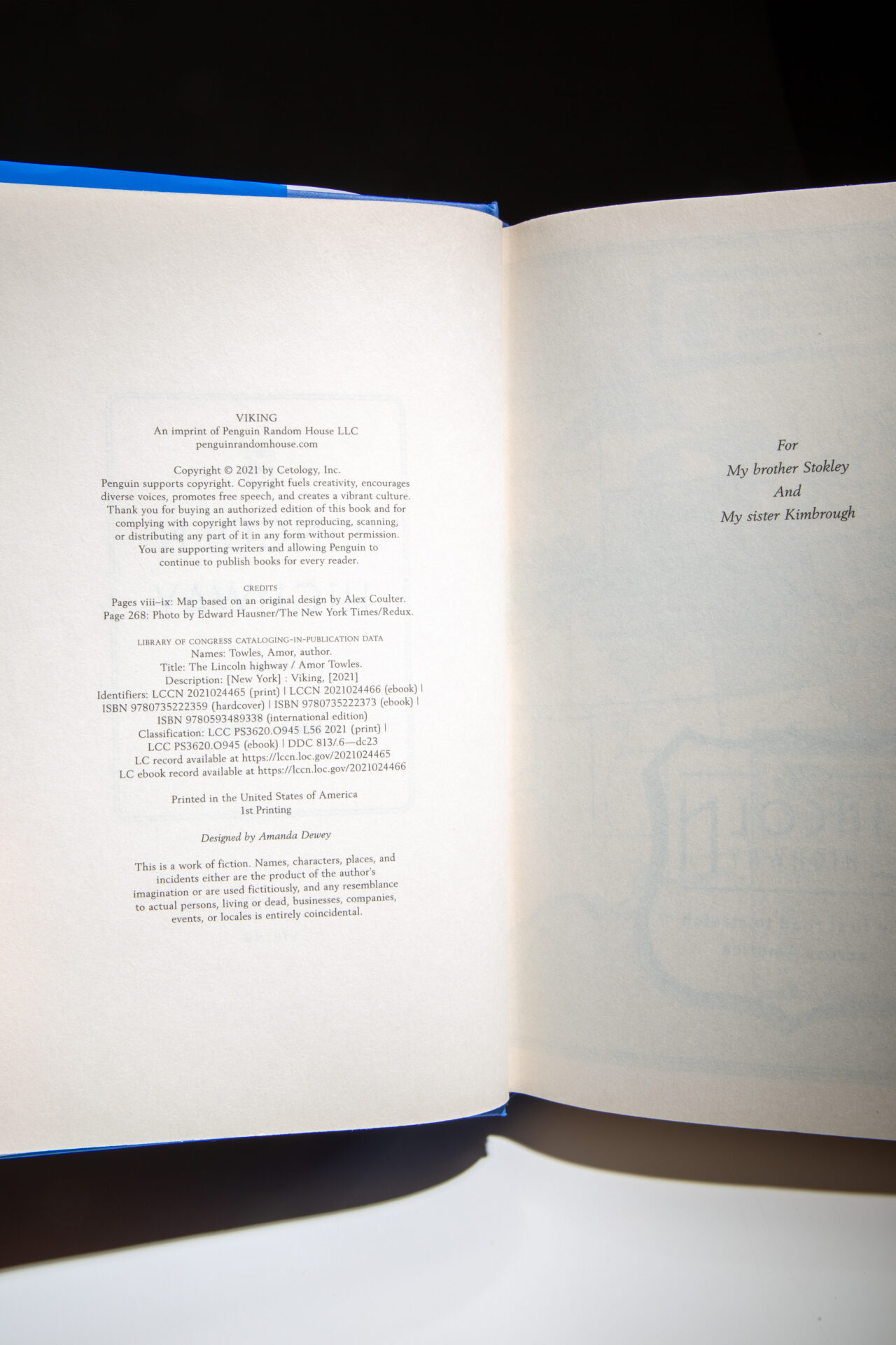 Signed first edition, first printing of The Lincoln Highway: A Novel by Amor Towles.