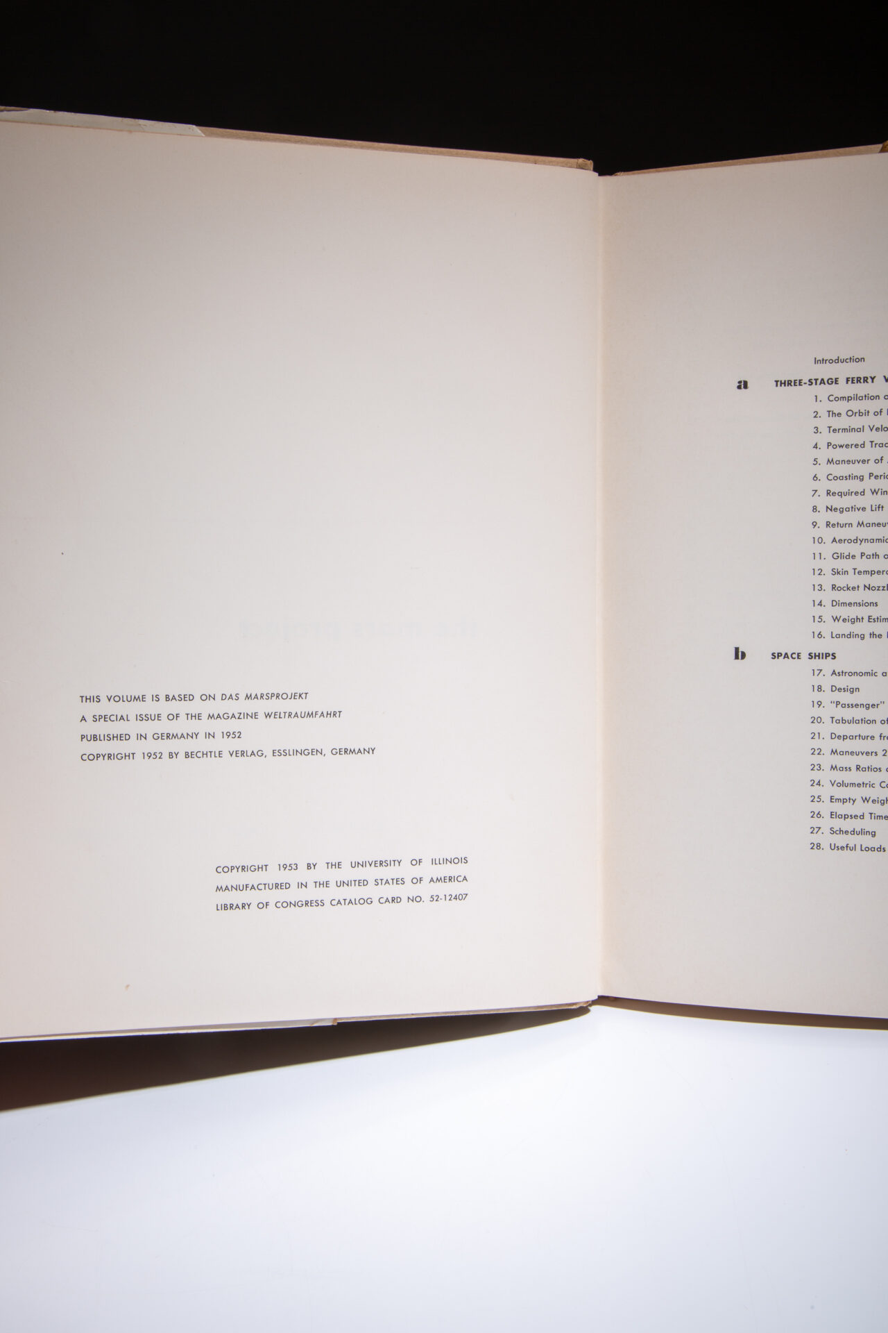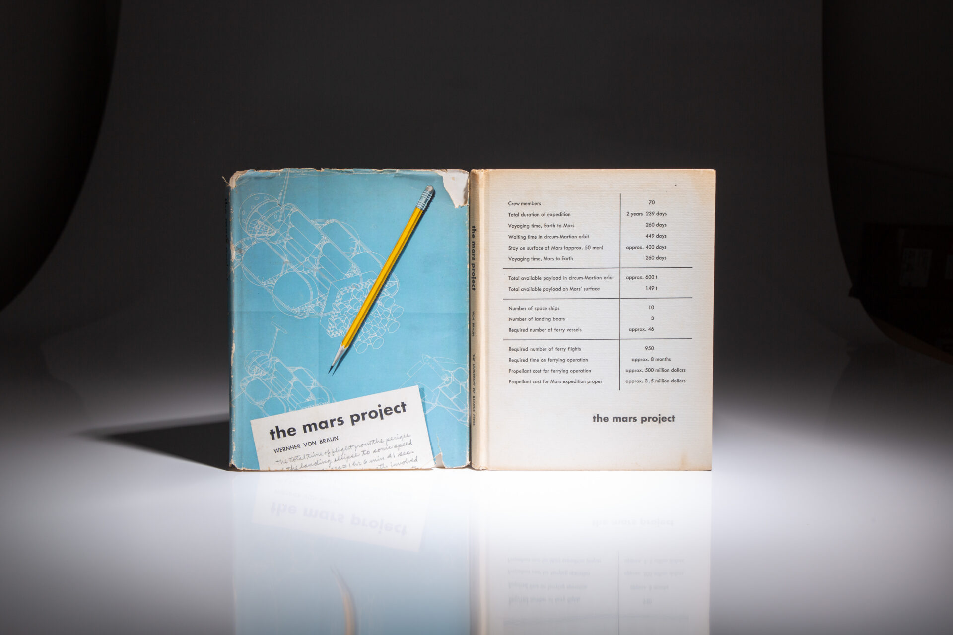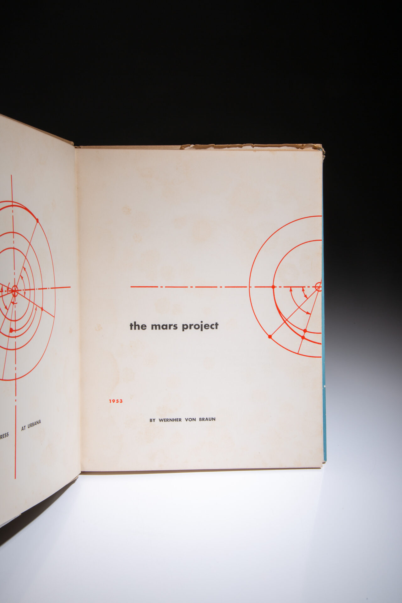 The first edition, first printing of The Mars Project by Wernher Von Braun. This copy is from the library of Dr. James W. Fitzgibbon, who along with Buckminster Fuller, designed geodesic domes, critical to human exploration of mars.