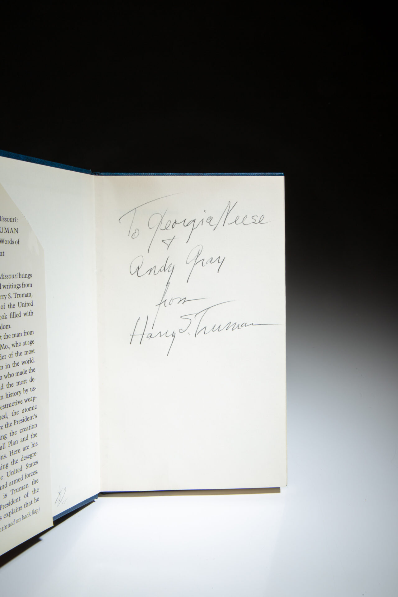 Inscribed on the front free endpaper: “To Georgia Neese + Andy Gray / from / Harry S. Truman.”