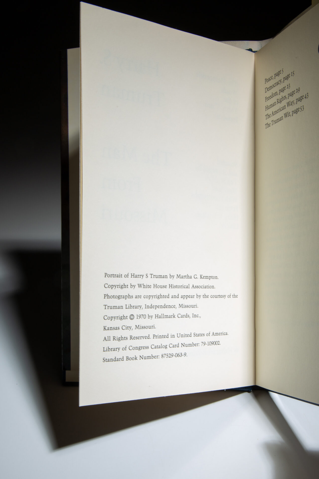 A scarce title signed by Truman, one of four known examples signed for friends and family.