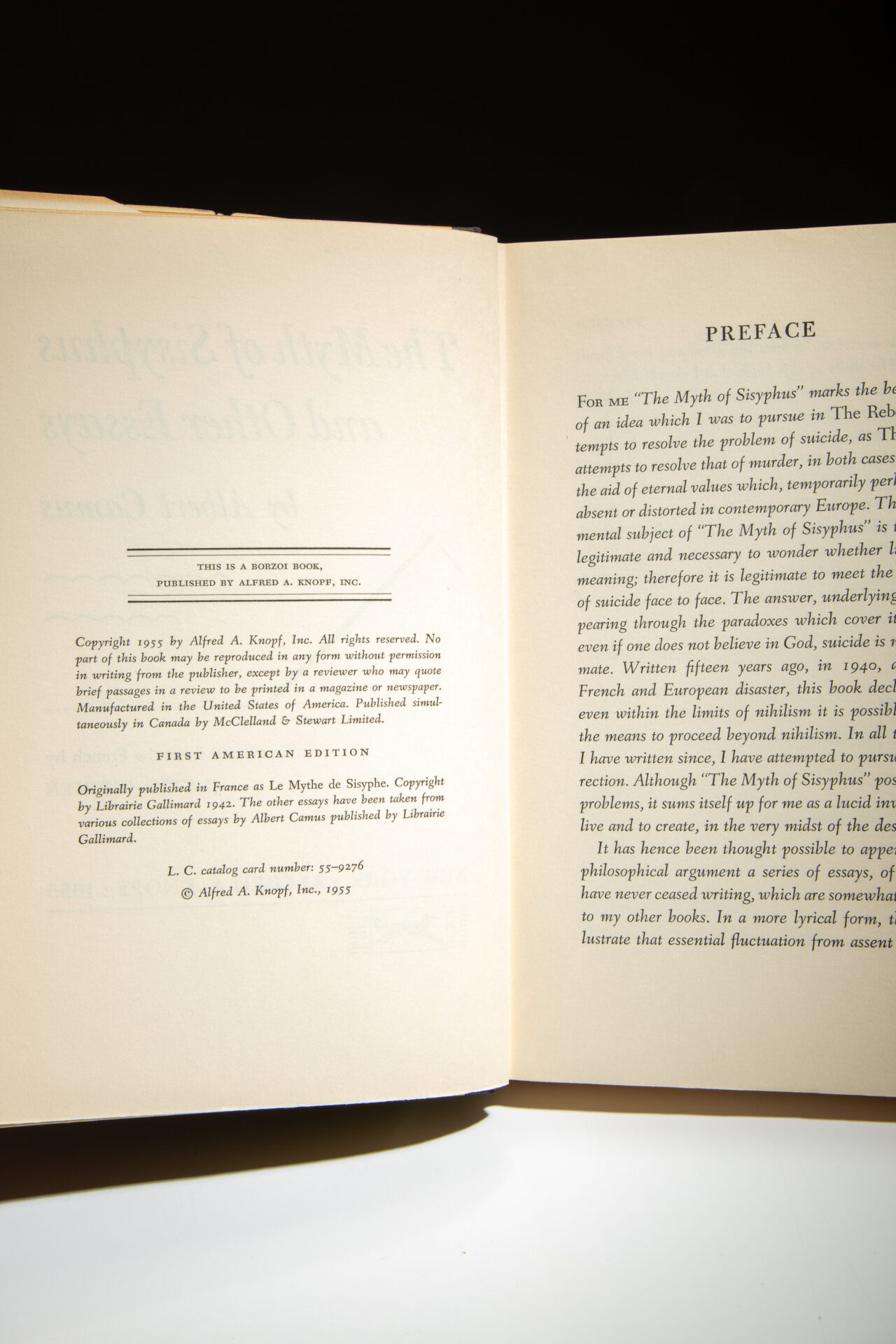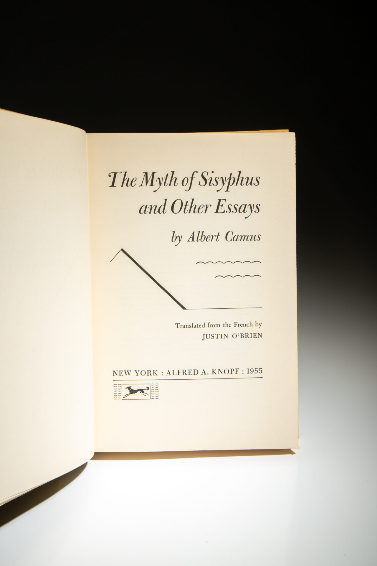 First American edition of The Myth of Sisyphus and Other Essays by Albert Camus, as translated to English by Justin O’Brien.
