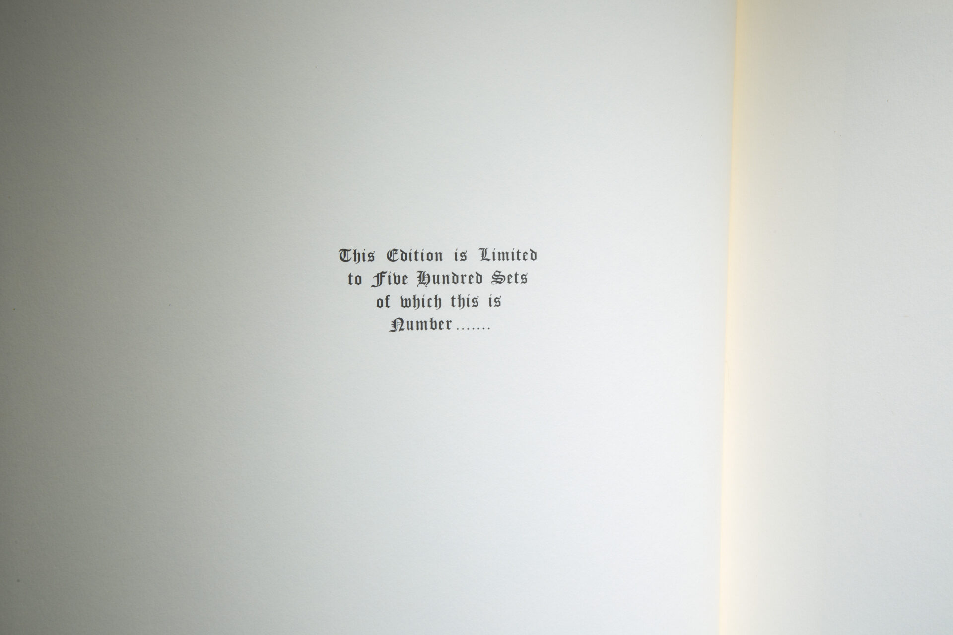 The Custom Edition of this work was limited to 75 copies of the quarto and folio volumes, this being number 71/75, numbered in pencil on the colophon.