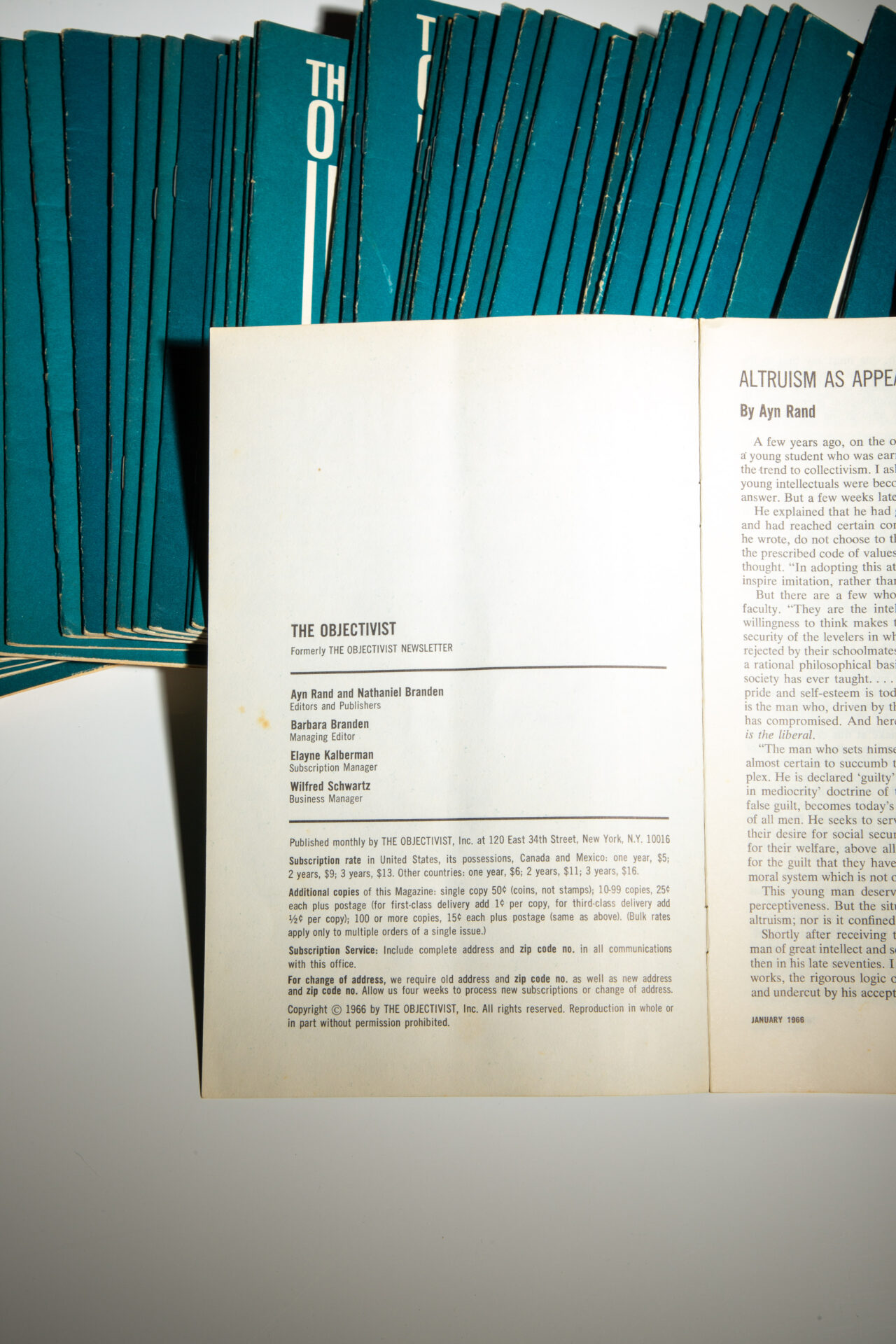 The complete run of The Objectivist, which ran from January 1966 to September 1971, a total of 69 issues.
