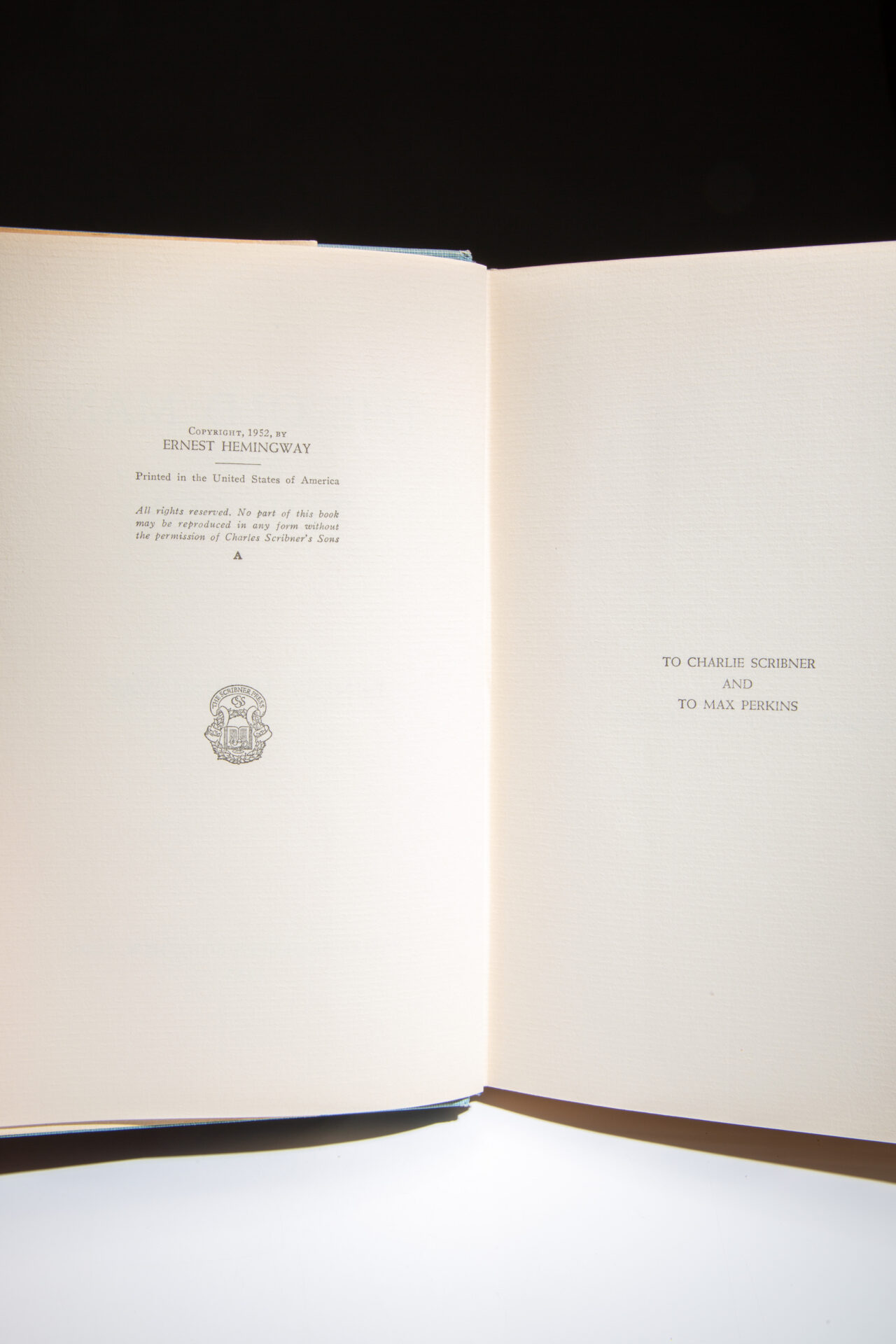 First edition, first printing of The Old Man and the Sea by Ernest Hemingway.