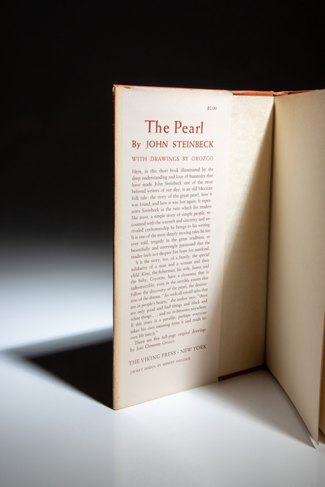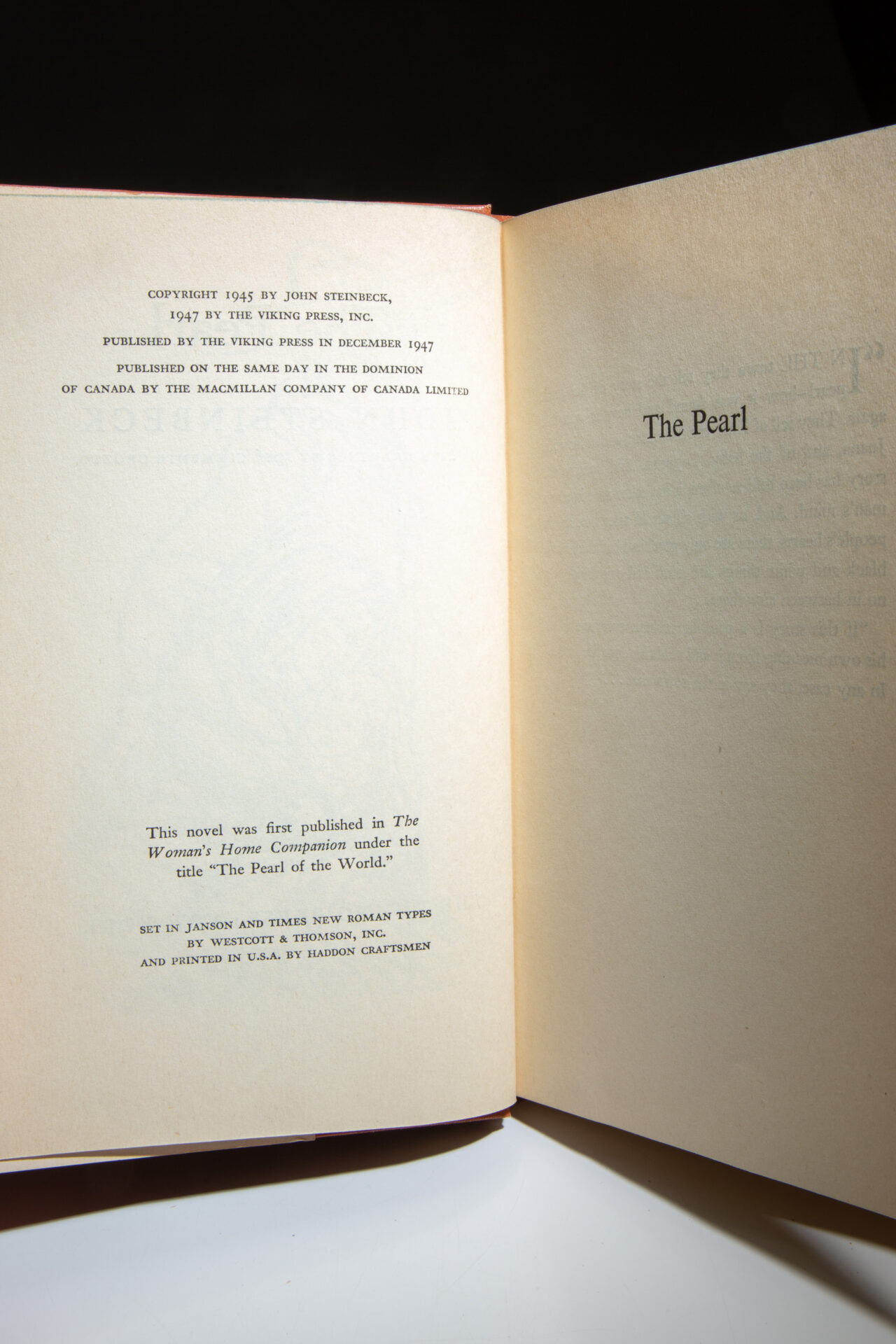 The first edition, first printing of The Pearl by John Steinbeck, in the publisher’s first state dust jacket.