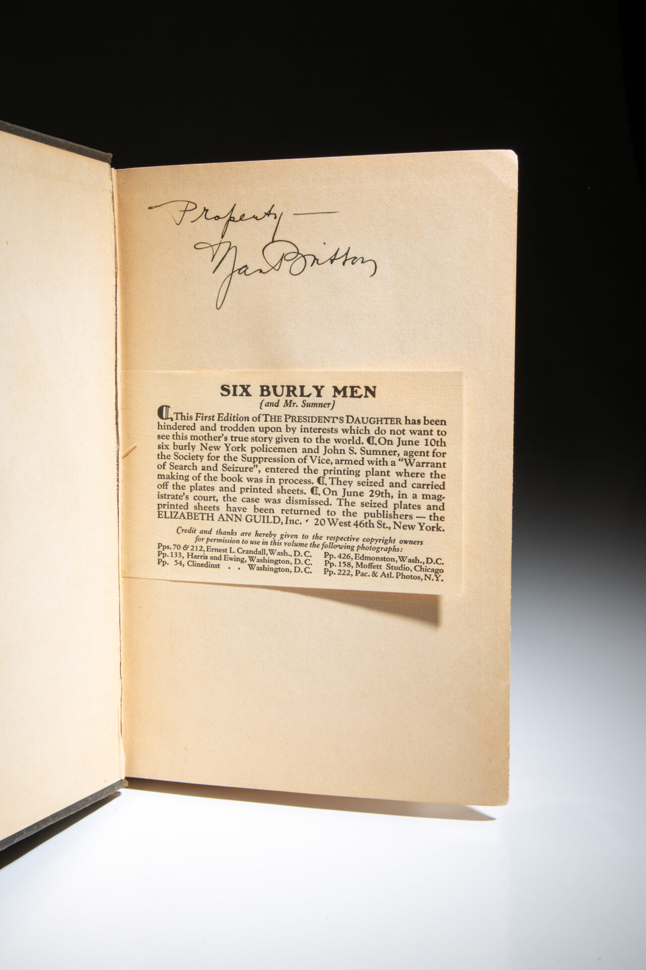 The author, Nan Britton’s, personal copy of her book, The President’s Daughter, with her bookplates and ownership signature.