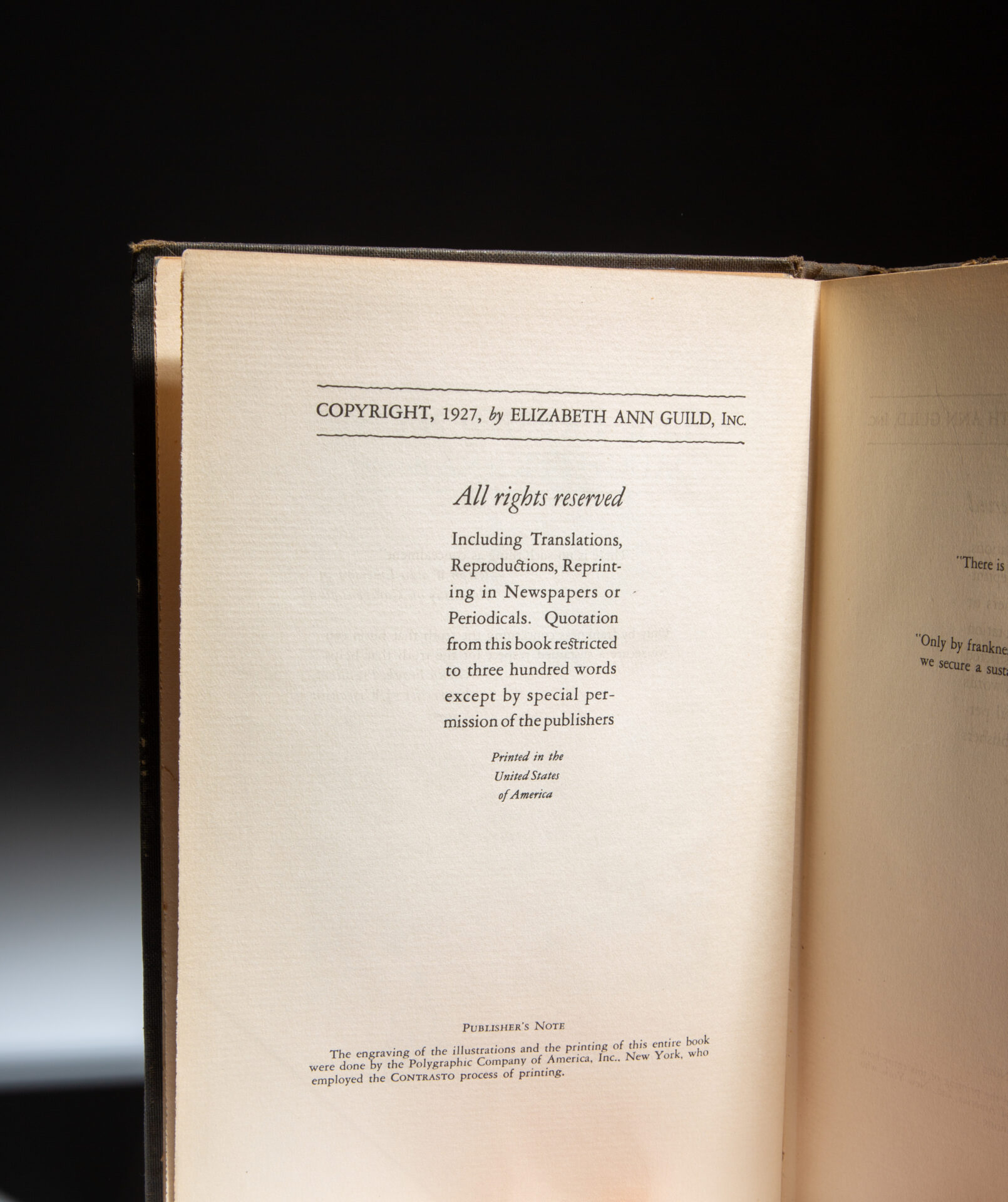 This copy includes the personal bookplate of Nan Britton on the front and rear pastedowns. Additional signed on the front free endpaper: “Property – Nan Britton.”
