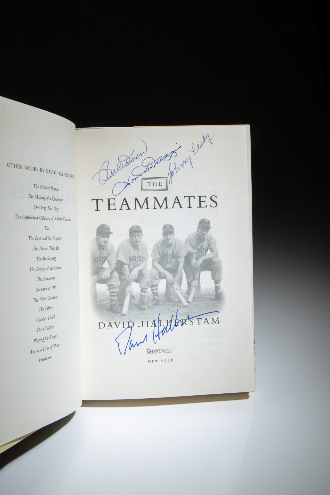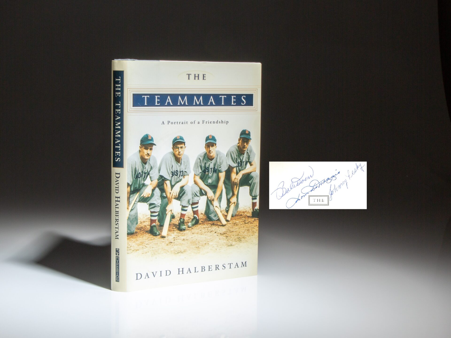 Signed first edition of The Teammates: A Portrait of a Friendship by David Halberstam. This copy is signed by Bob Doerr, Dom DiMaggio, Johnny Pesky, and the author, David Halberstam.