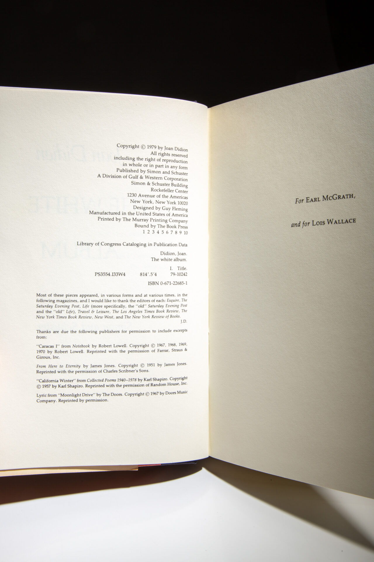First edition, first printing of The White Album by Joan Didion, in the publisher’s first state dust jacket.