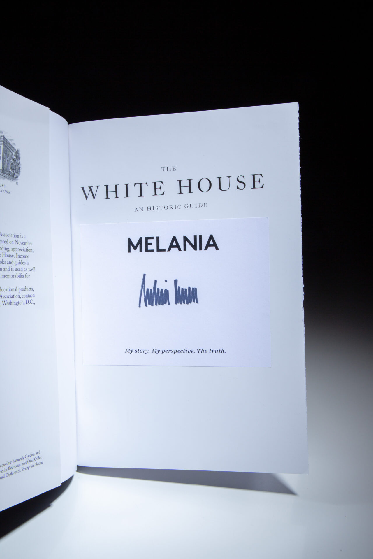 The White House: An Historic Guide, the twenty-fourth edition, signed by First Lady Melania Trump on her bookplate.