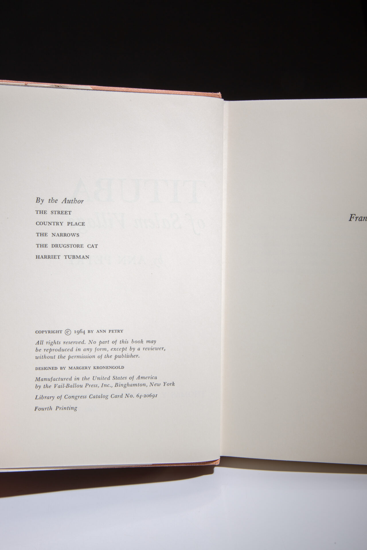 Signed first edition, fourth printing of Tituba of Salem Village by Ann Petry.