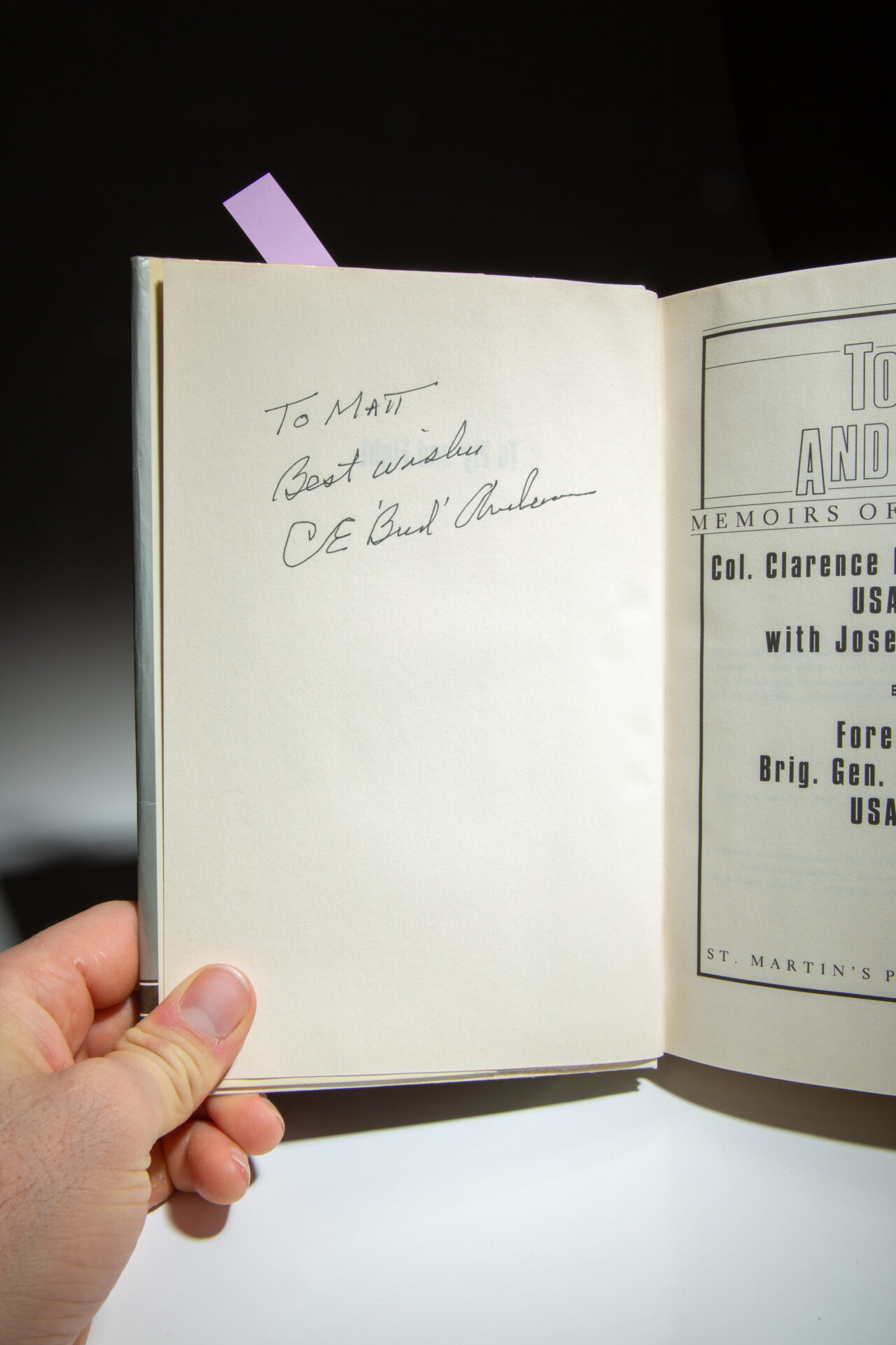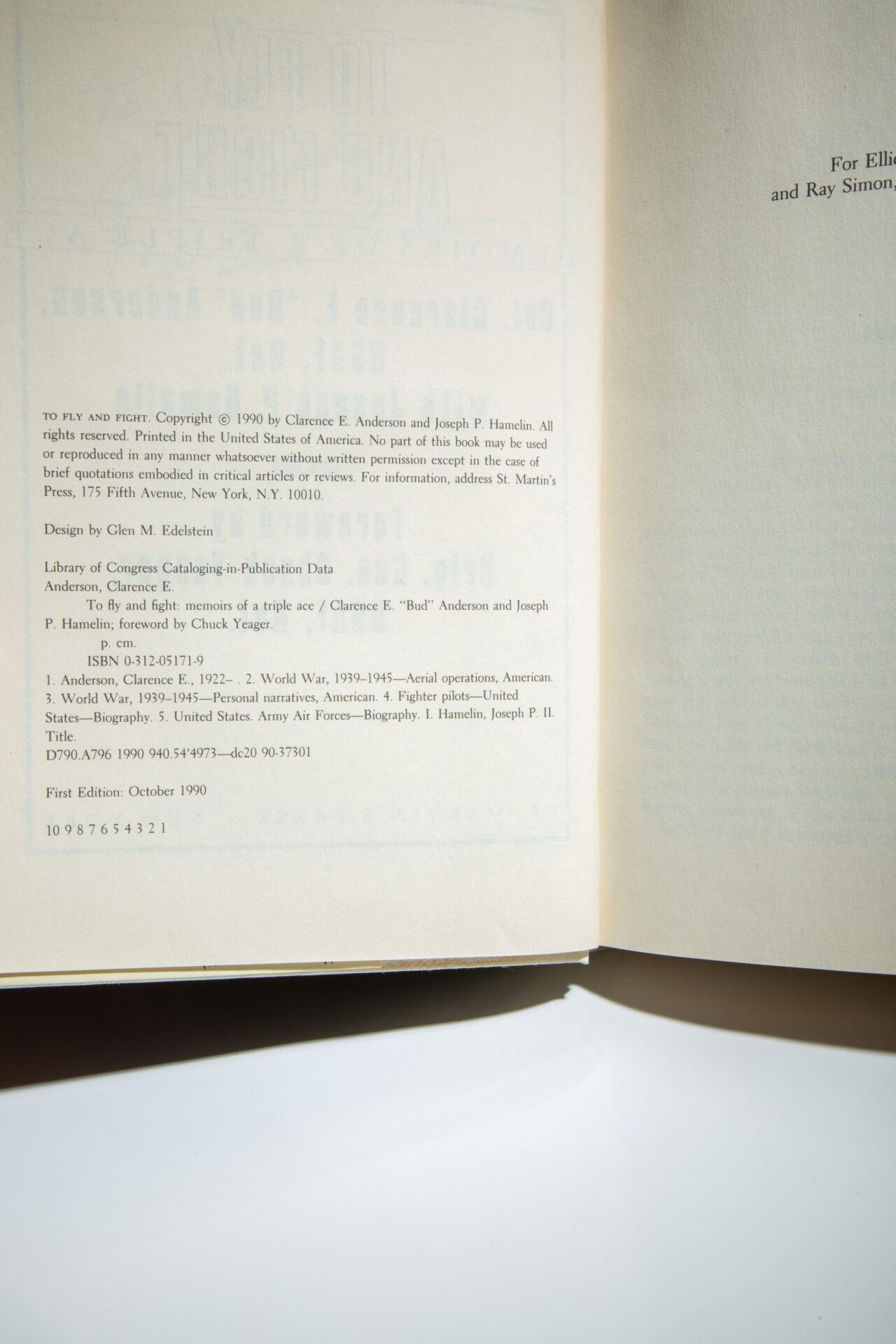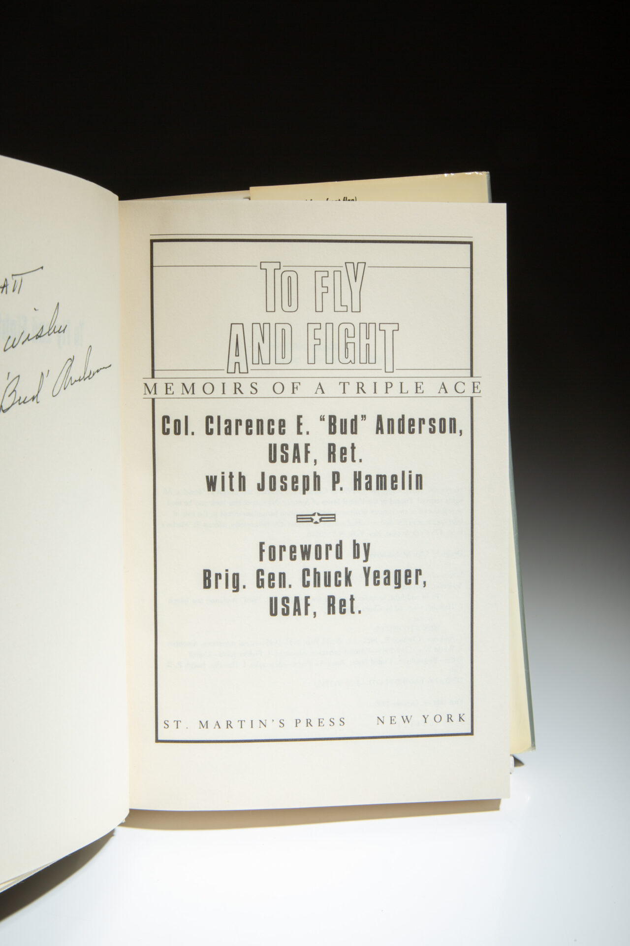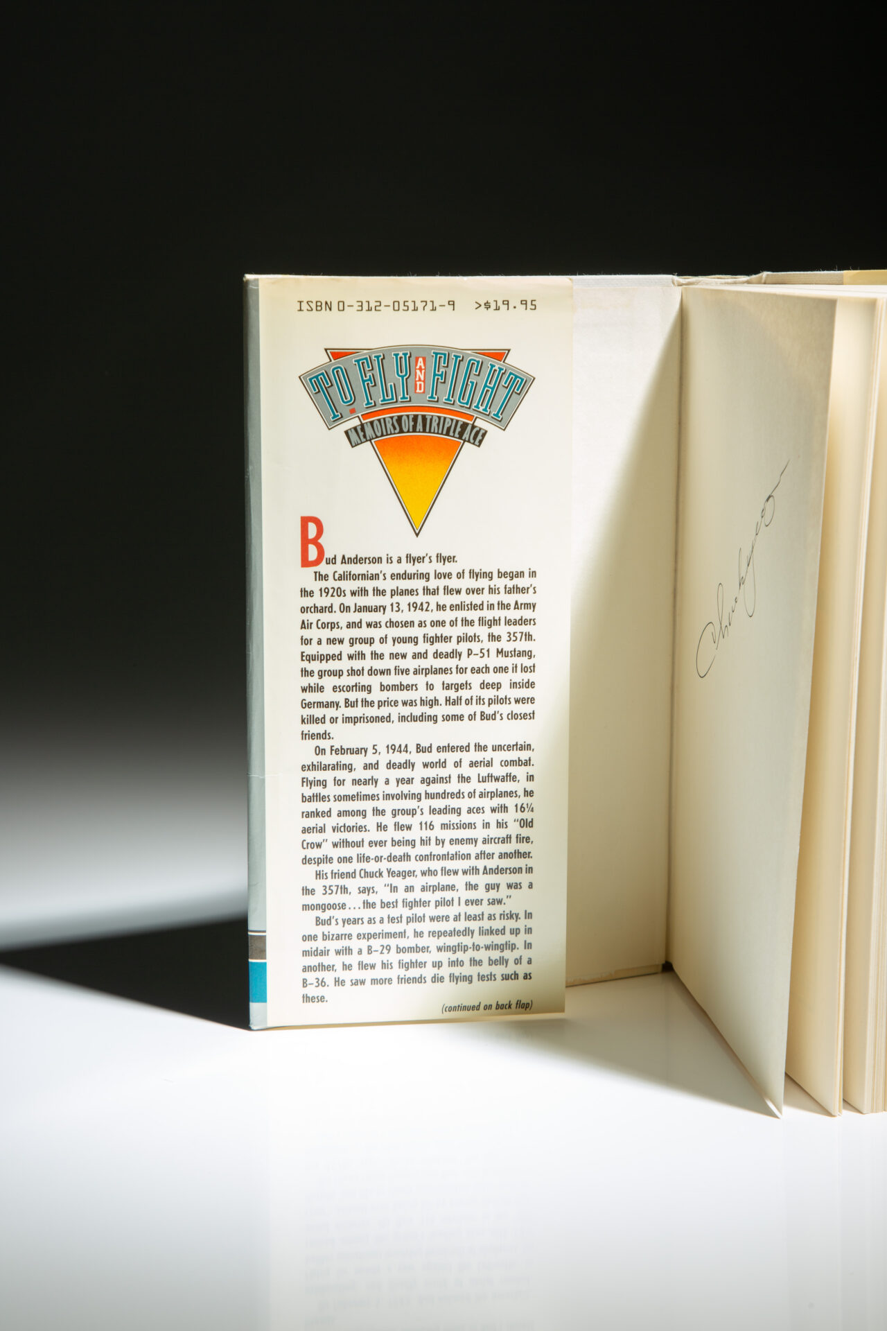 The first edition of To Fly And Fight: Memoirs of a Triple Ace, signed by the author, Colonel Clarence “Bud” Anderson and Brig. Gen. Chuck Yeager.