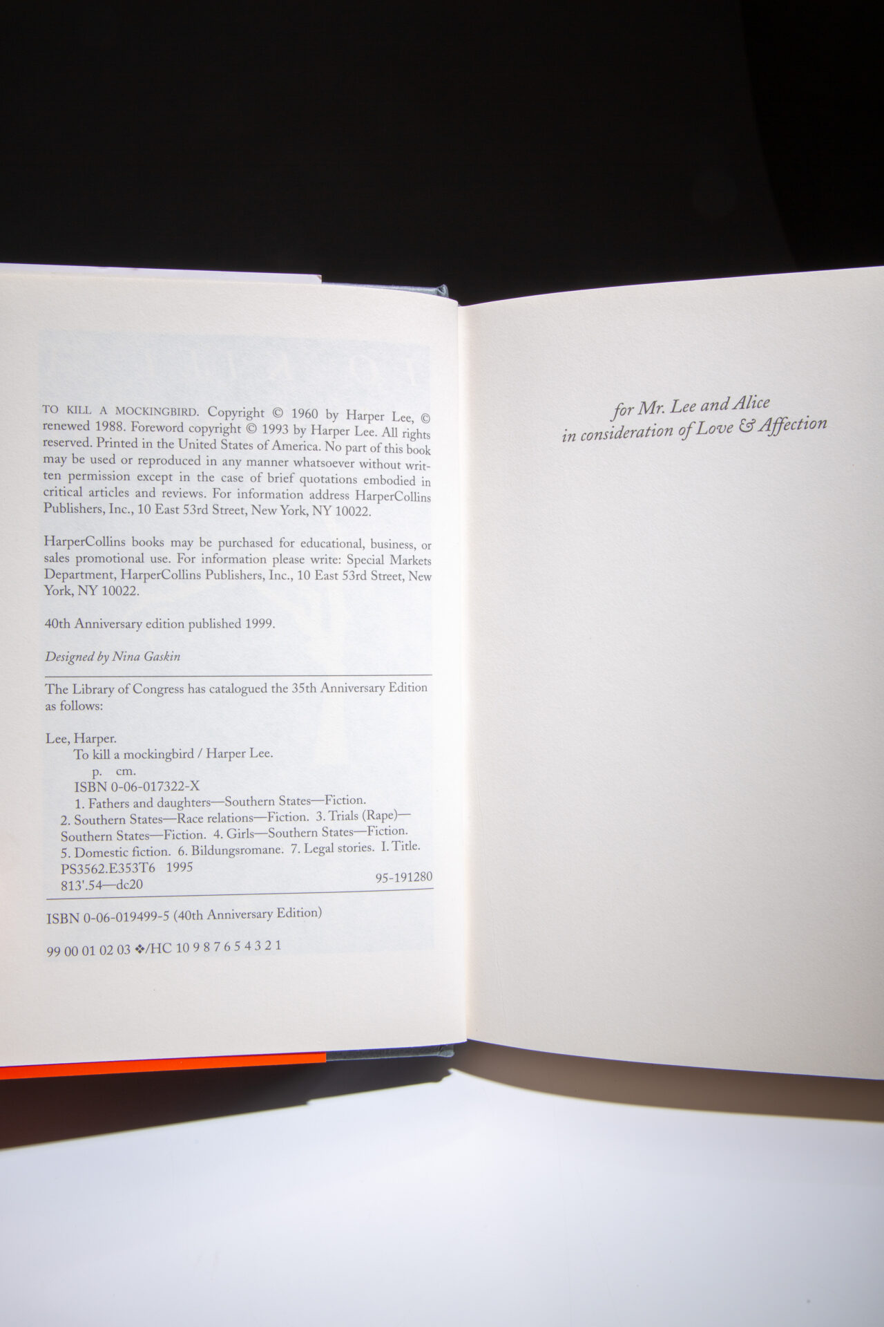 Signed copy of To Kill A Mockingbird by Harper Lee, the 40th Anniversary Edition.
