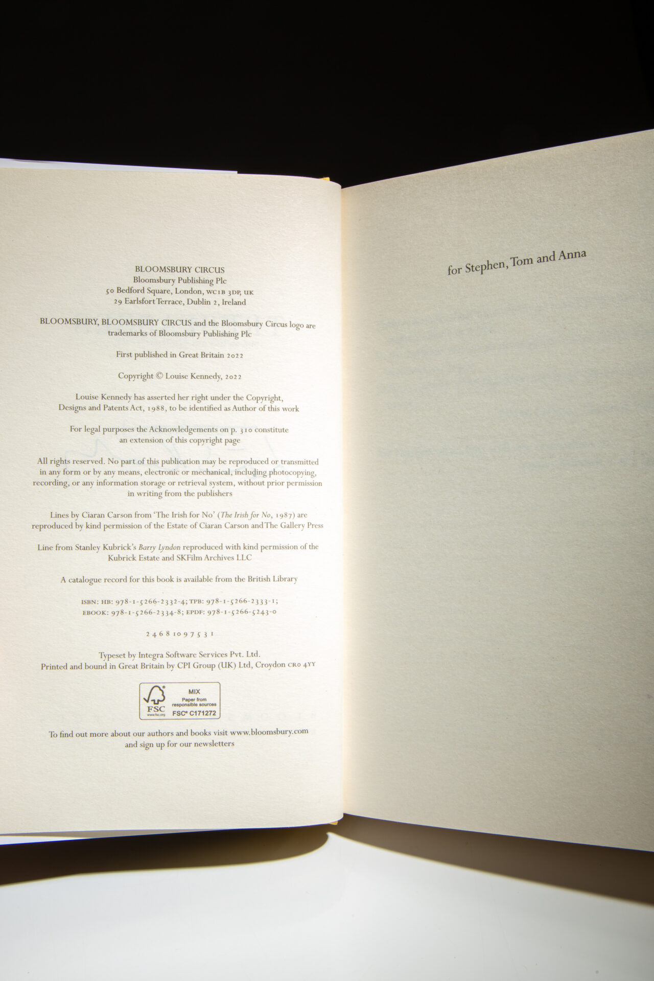 The first edition, first impression of Trespasses, signed by Louise Kennedy.