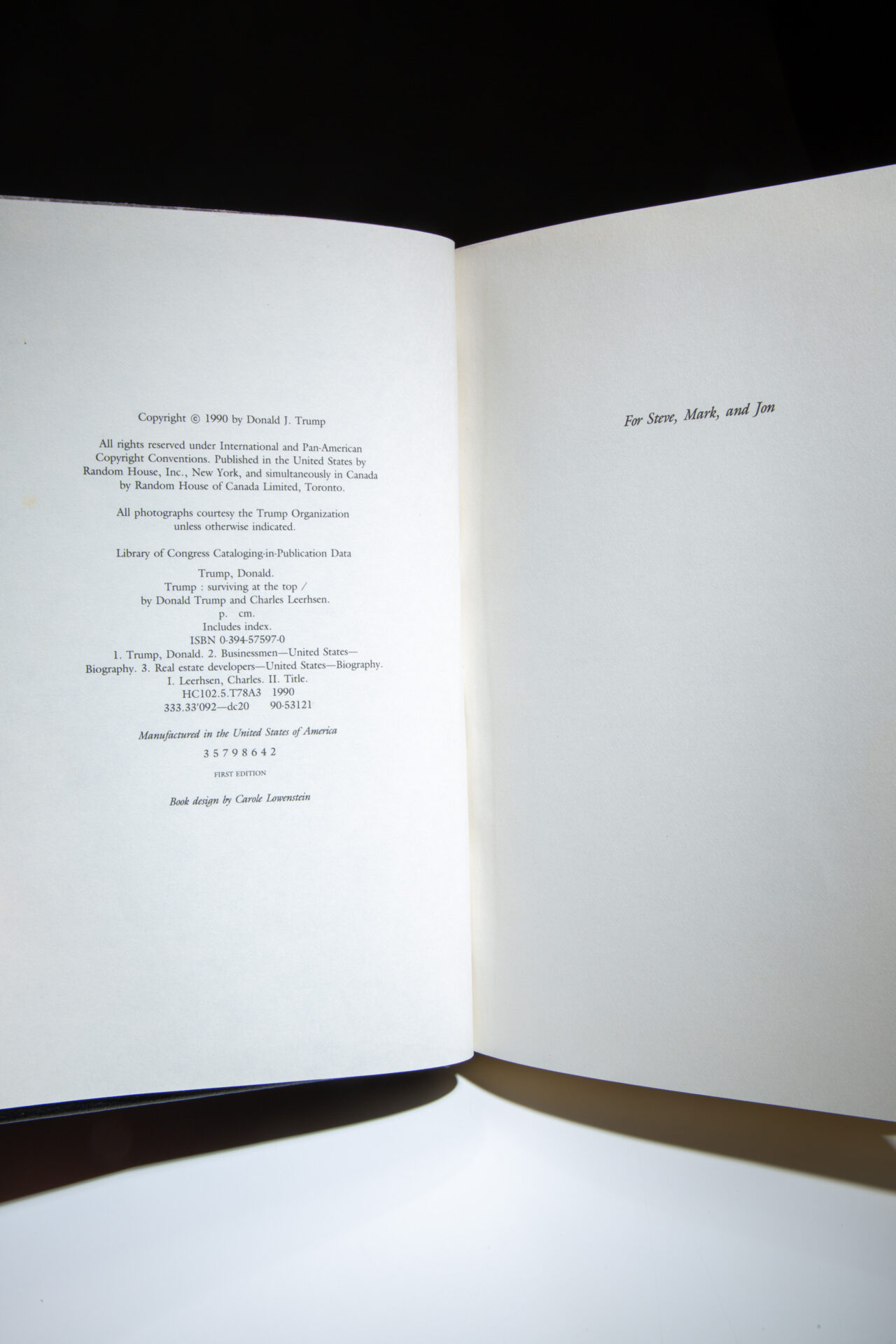 The signed limited edition of Trump: Surviving at the Top, by Donald J. Trump.