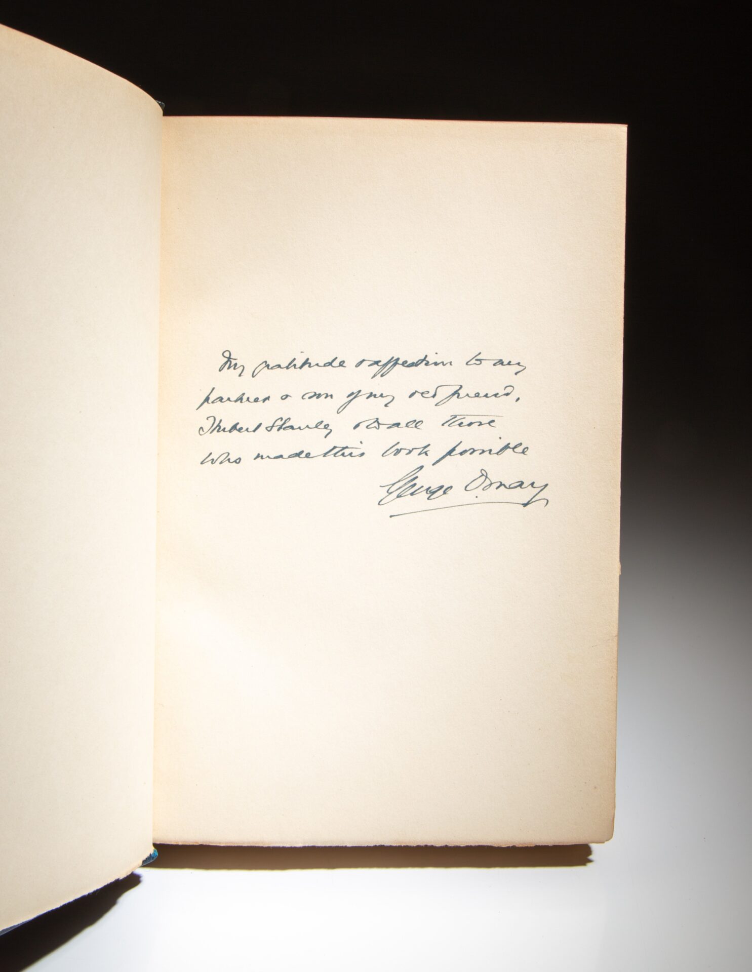 Inscribed by the author on the second free endpaper of the first volume: “…Who made this book possible. George O. May.”