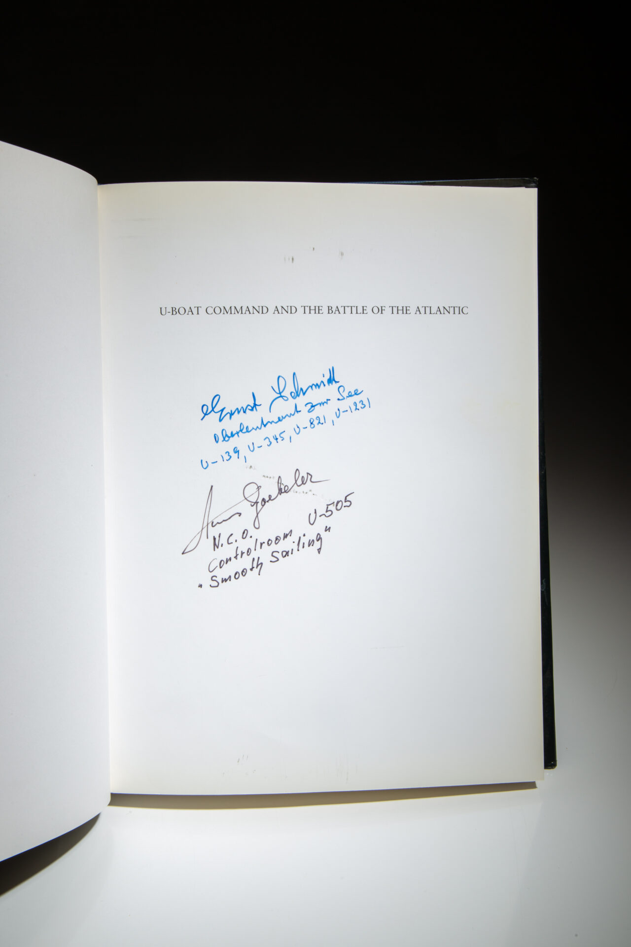This copy is signed on the half title by U-Boat Commander Ernst Schmidt and Hans Goebeler (Crew member of U-505).