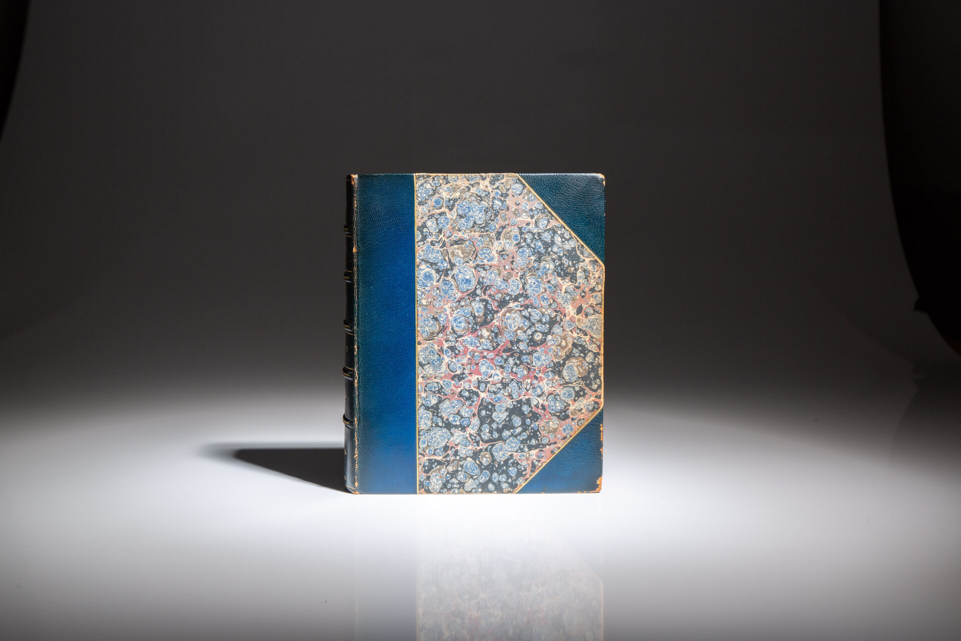 Octavo, [ii], 732pp, [733]-736pp. Rebound in three-quarter blue morocco, marbled boards, title stamped in gilt on spine with decorative raised bands. Top edge gilt. Includes the half-title, lacking original blue wrappers. Short closed tear through p. [1], delicate leafends, some minor loss. New endpapers. Slocum notes that this printing was issued on “inferior quality” paper, which is evident in the toning throughout this copy. Text block resown. (Slocum & Cahoon, A17) The text corrections noted on the original errata were largely corrected by this fourth printing, but “additional corrections” were discovered and incorporated into the four-page errata on page [733]-736. An attractive presentation.