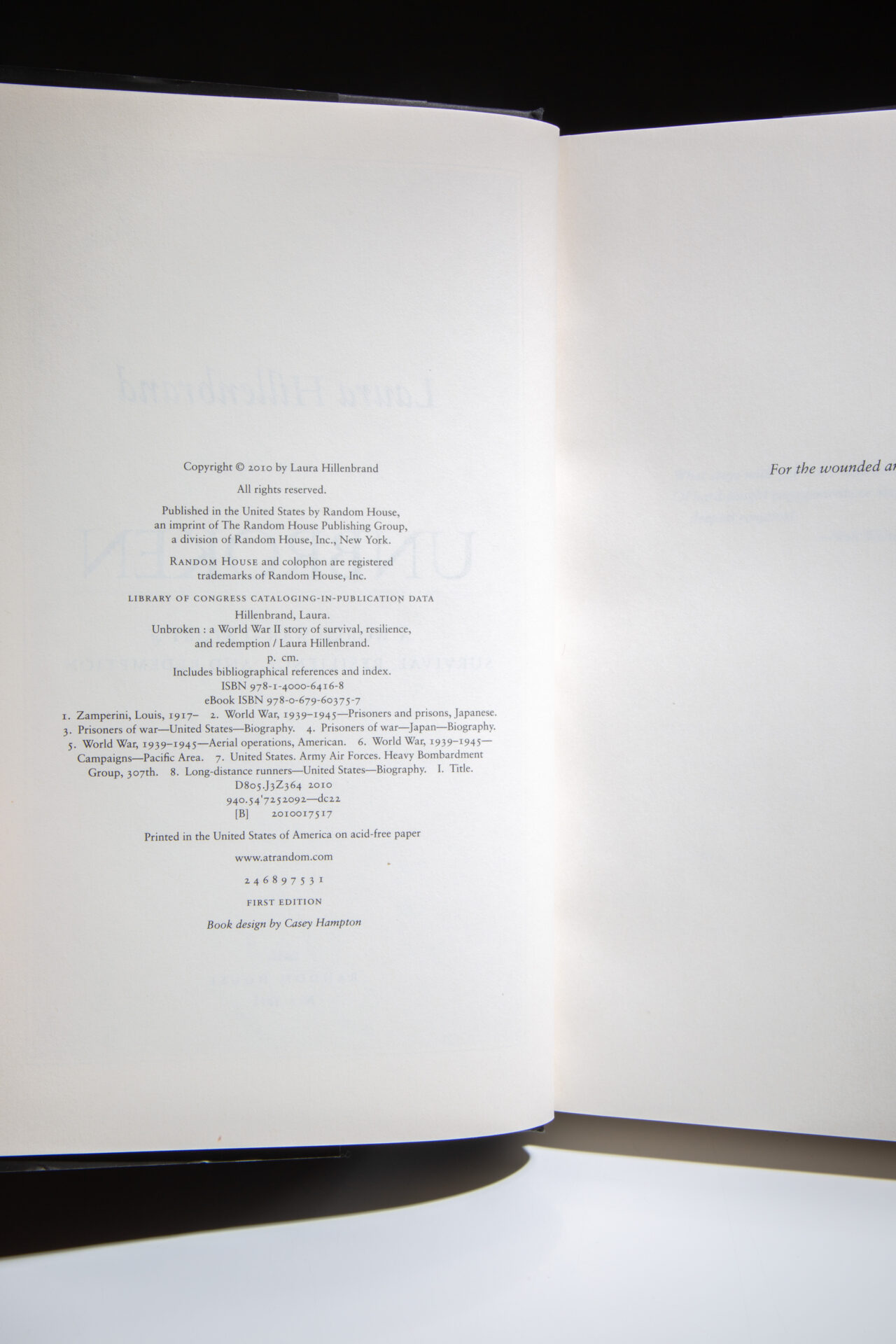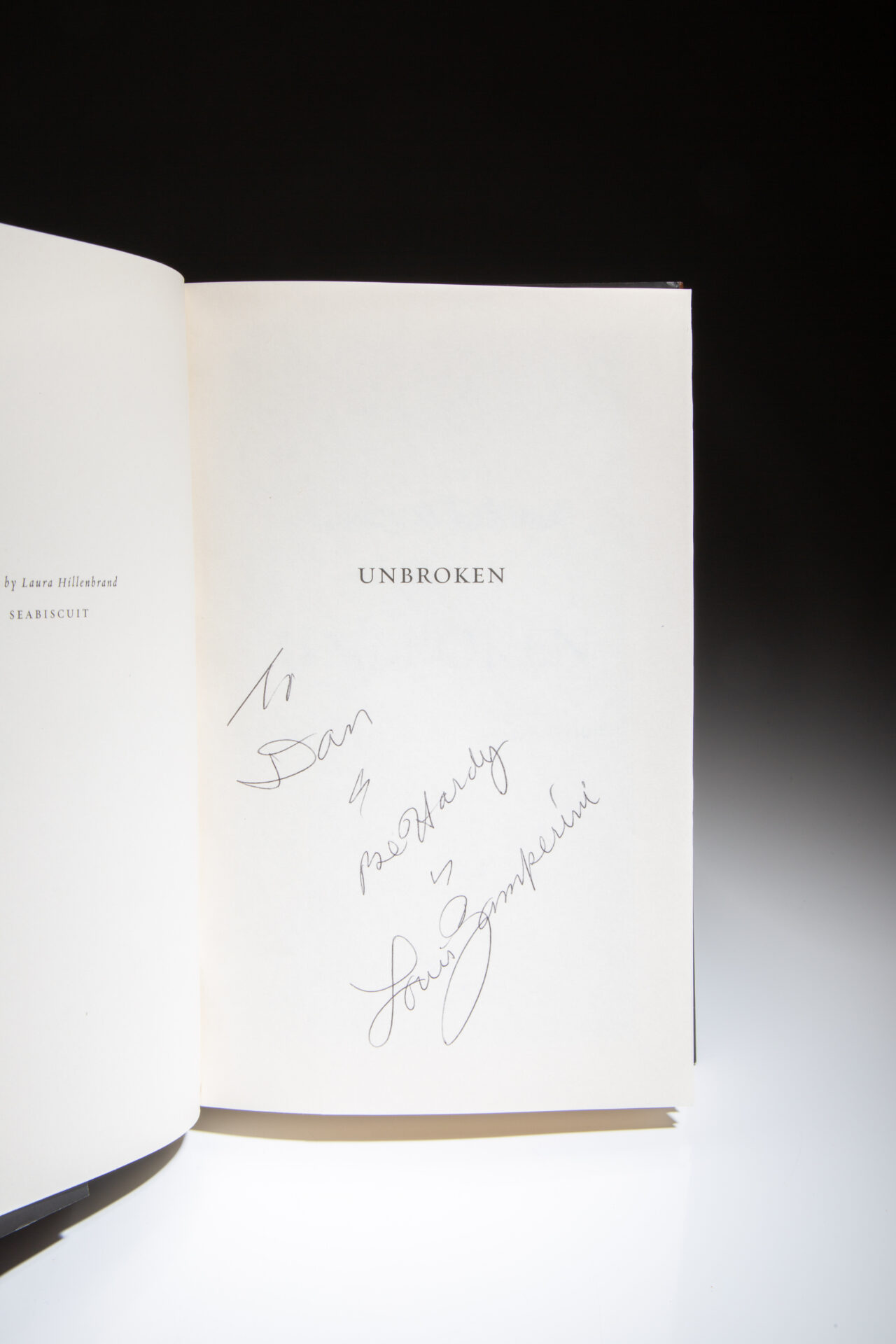 The first edition, first printing of Unbroken by Laura Hillenbrand, signed by World War II veteran, Olympic runner, and the subject of the book, Louis Zamperini.